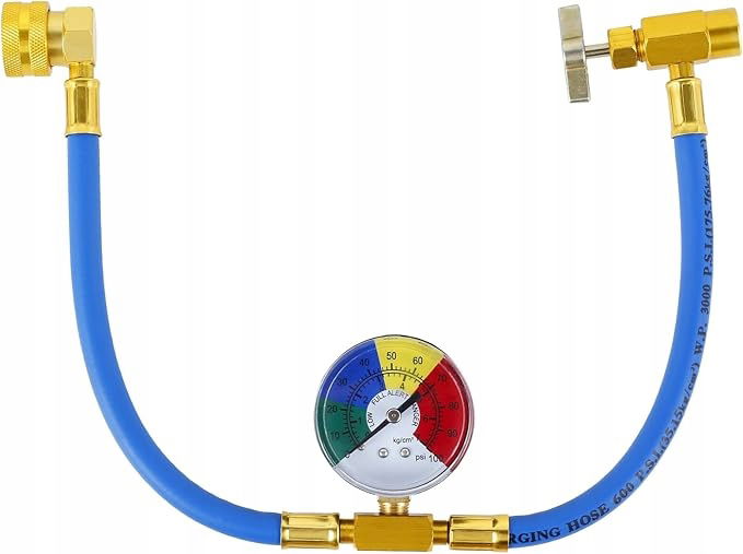 ZAWARTOŚĆ OPAKOWANIA: Wąż do napełniania czynnika chłodniczego R134A z manometrem i złączkami