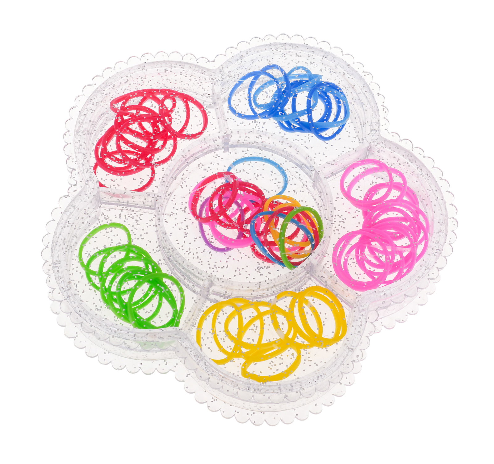 - 64 gumki do włosów w pudełeczku z przegródkami,