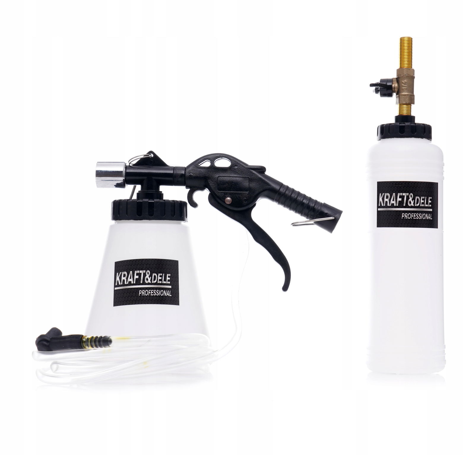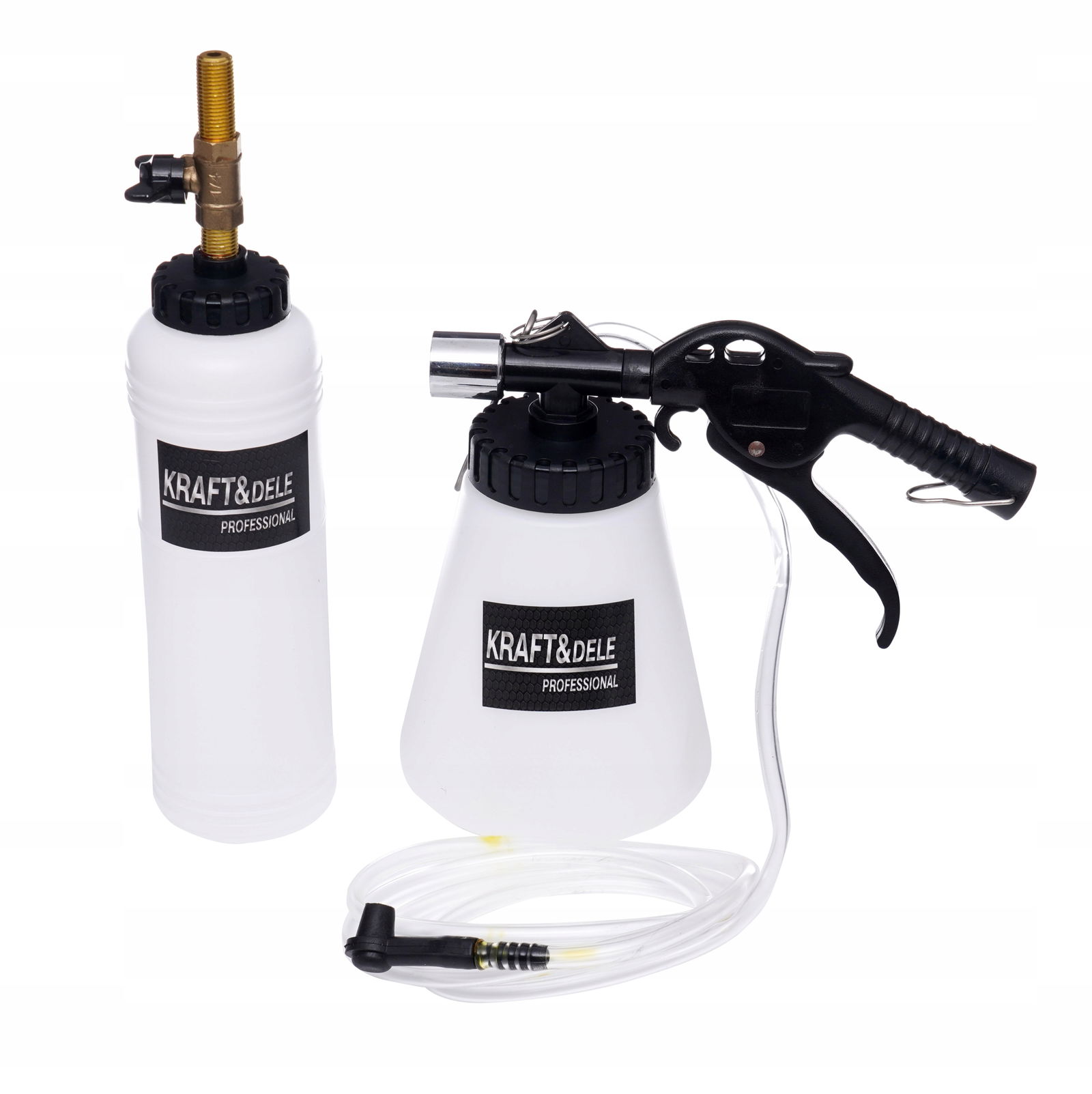 Profesjonalny zestaw do odpowietrzania / wymiany płynu hamulcowego marki Kraft&Dele model KD1457 to idealne zastosowanie dla mechaników w warsztatach samochodowych. Umożliwia samodzielną wymianę płynu hamulcowego, poprzez wyssanie go z układu przy pomocy ciśnienia instalacji pneumatycznej.