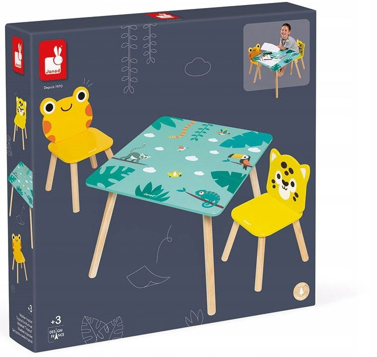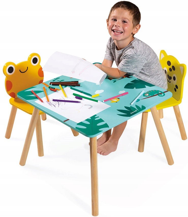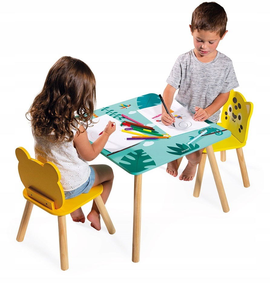 ZESTAW DREWNIANYCH MEBELKÓW stolik 2 krzesła JANOD