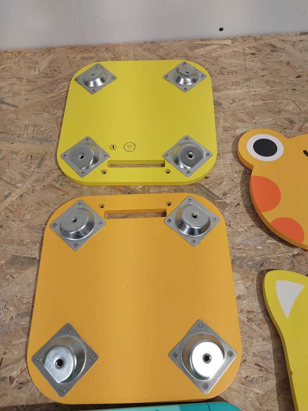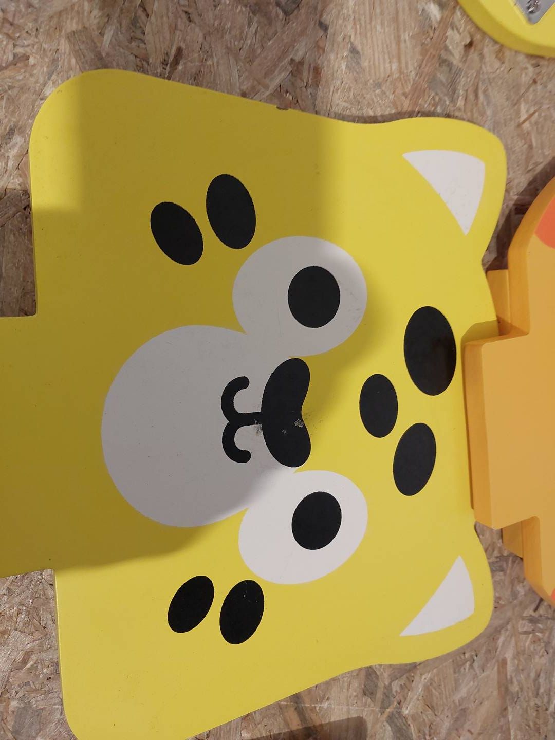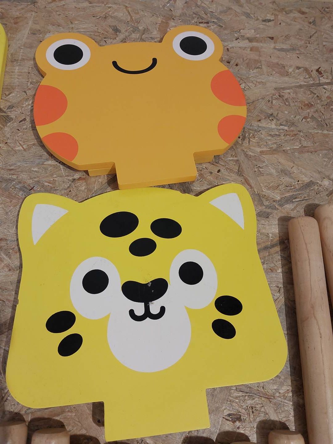 Jedno jest pomarańczowe z oparciem w kształcie głowy żaby, drugie – intensywnie żółte z głową jaguara.
