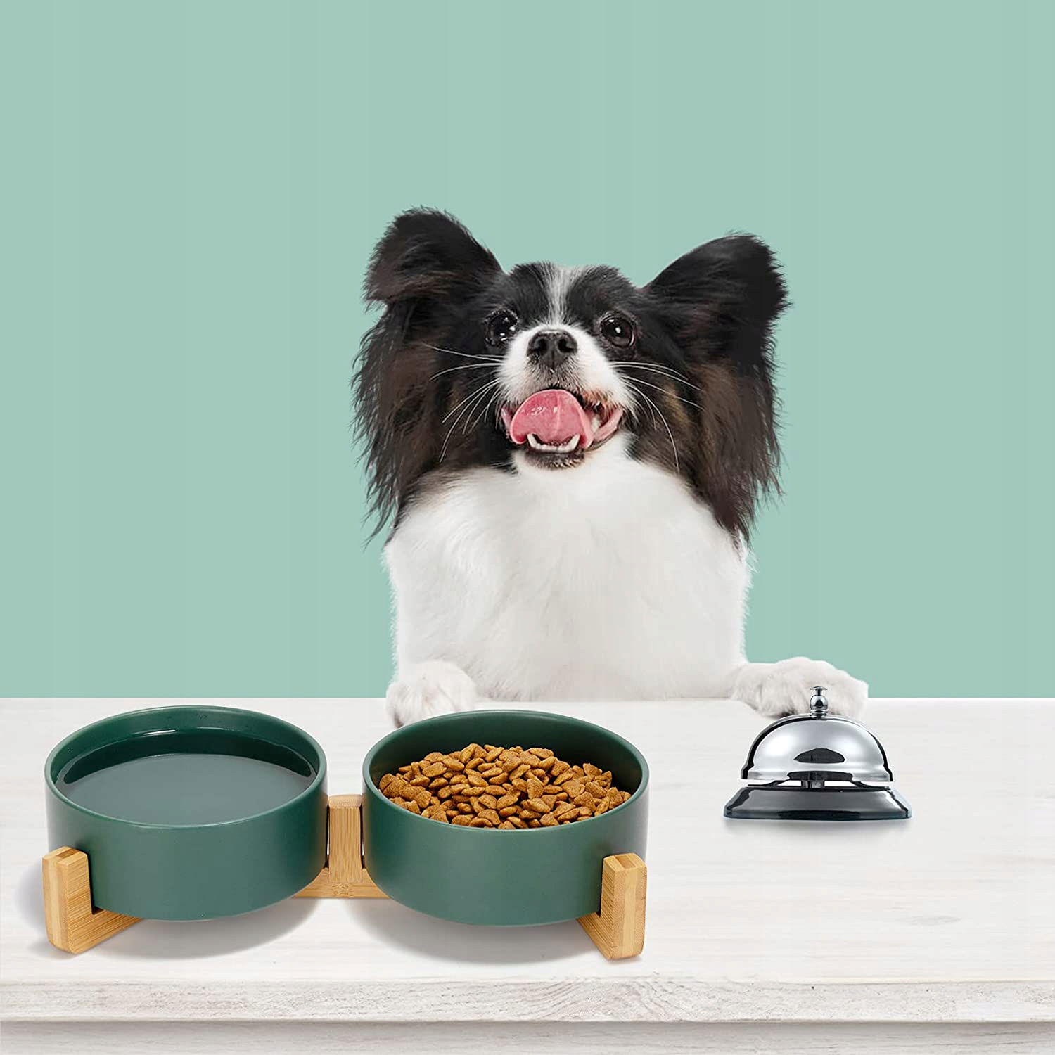 SPUNKYJUNKY Miska dla psa Ceramiczna miska dla kota Miska do karmienia z bambusowym stojakiem Miski do karmienia dla psów i kotów, opakowanie 2 Miski dla psów Podniesiony wysoki zestaw, 400 ml