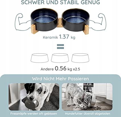 - Bezpieczny materiał ceramiczny: Ceramiczna miska dla psa Spunkyjunky jest wykonana z bezpiecznej dla żywności ceramiki i naturalnego drewna, wolnego od ołowiu i kadmu. Ceramika wysokotemperaturowa, nietoksyczna, nieszkodliwa, bezwonna, trwała.