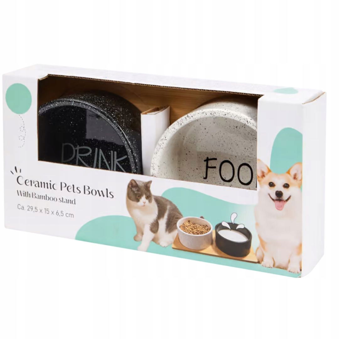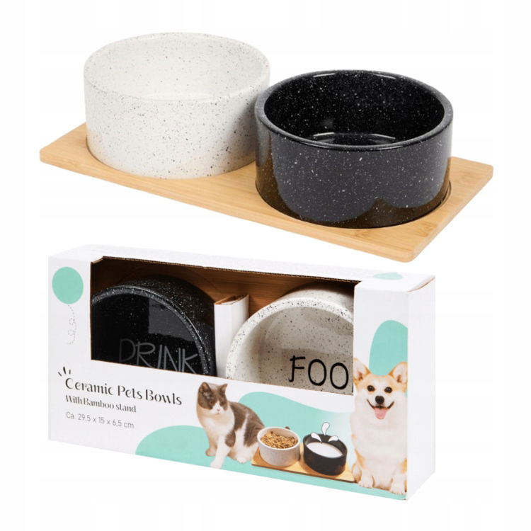 Zestaw dwóch misek ceramicznych bambusowa podstawa dla kota psa 29,5x15x6,5