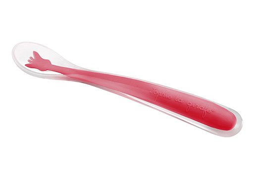 Dwie śliczne, miękkie łyżeczki silikonowe z Żyrafą Sophie stanowią doskonałe przejście pomiędzy butelką a normalnym karmieniem. Ładne, niebiesko-czerwone, wesołe kolory.