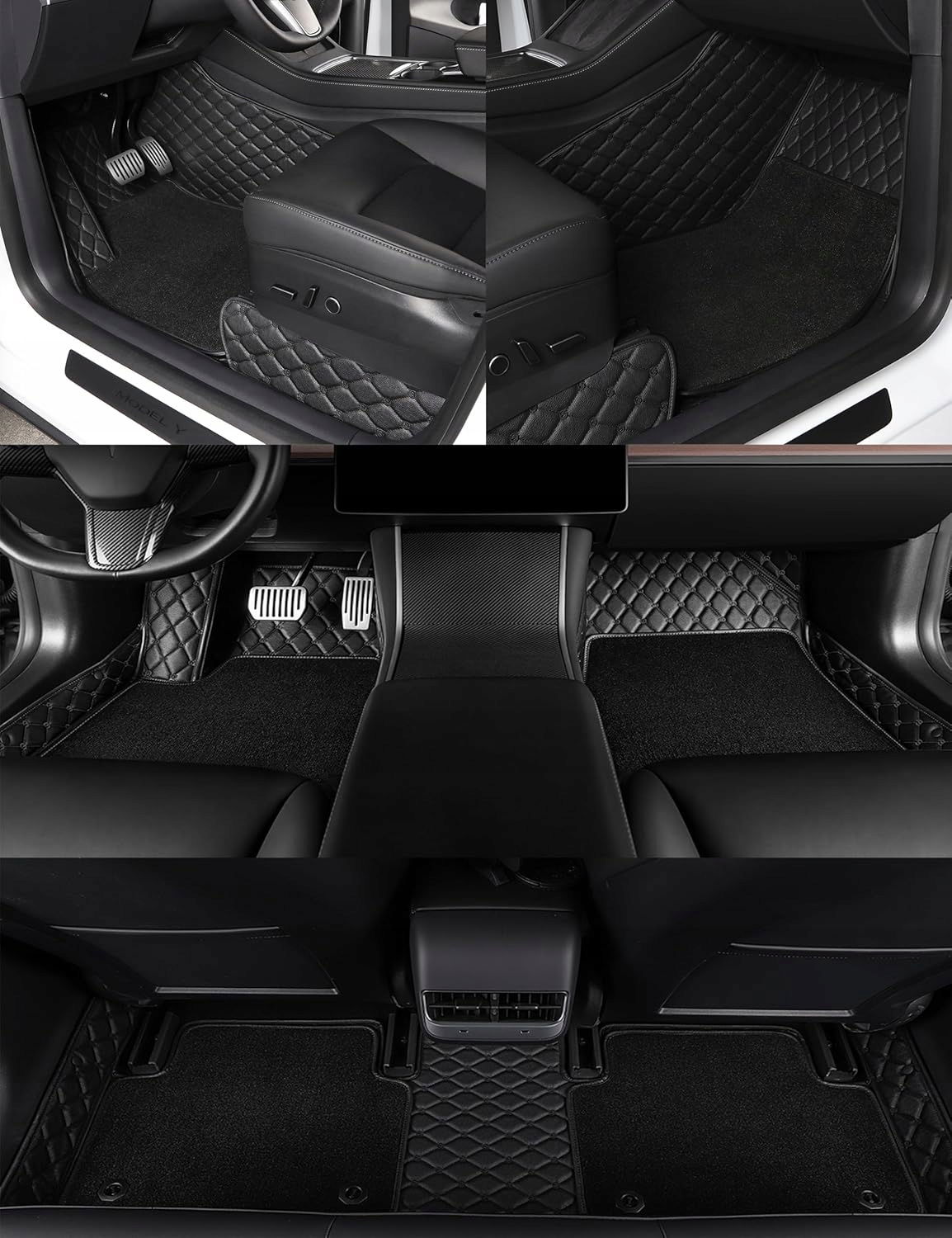 Zestaw zawiera: jeden zestaw dywaników + zestaw mat do bagażnika Tesla Model Y 2021-2025. Łącznie 4 sztuki całego zestawu mat Tesla.