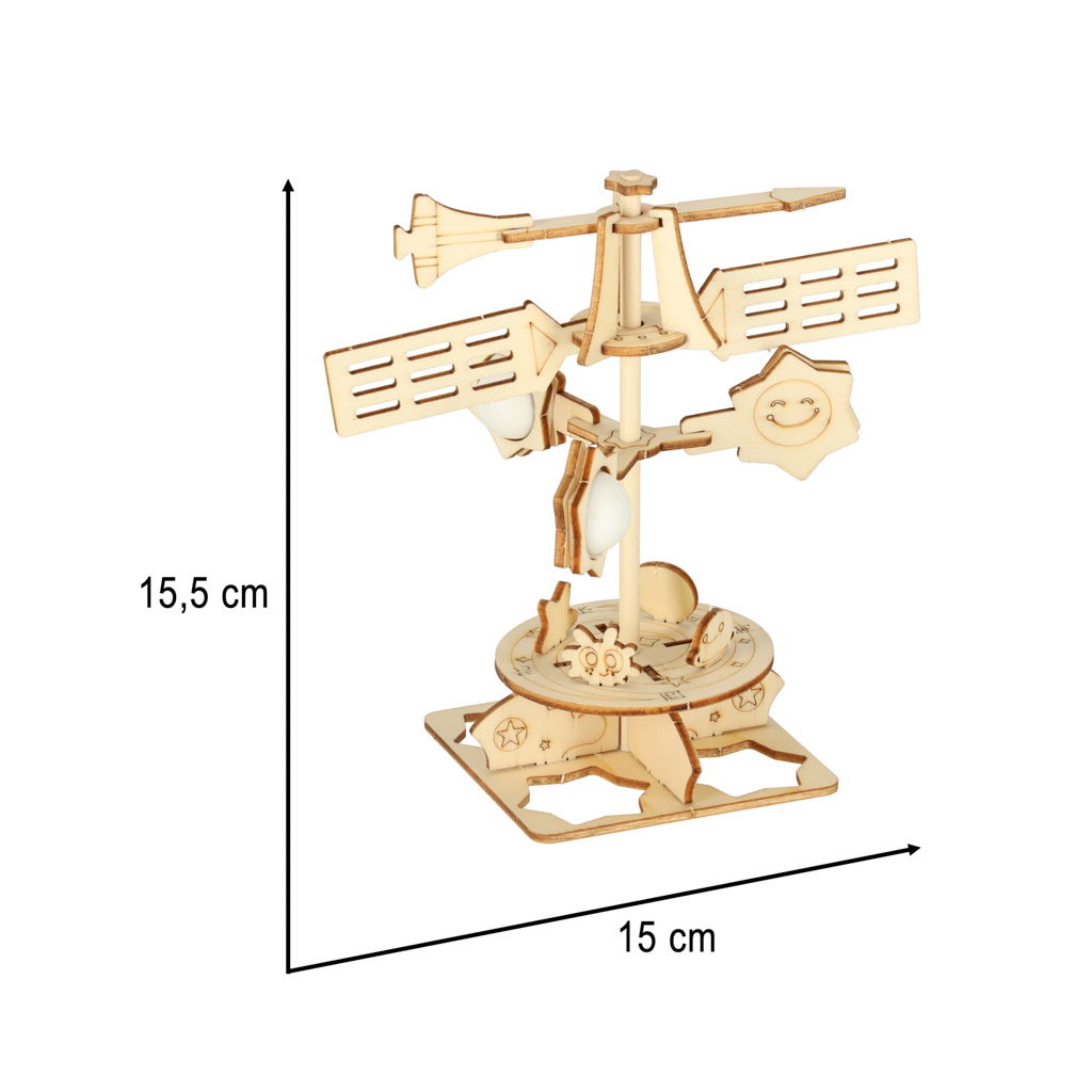 DREWNIANE PUZZLE PRZYRODNICZY MODEL 3D - Zestaw pozwala dzieciom samodzielnie stworzyć model wiatraczka, który działa jak wiatrowskaz, pomagając w nauce podstawowych zasad działania wiatru. To idealny model, który rozwija zarówno zdolności manualne, ciekawość przyrody, jak i kreatywność.