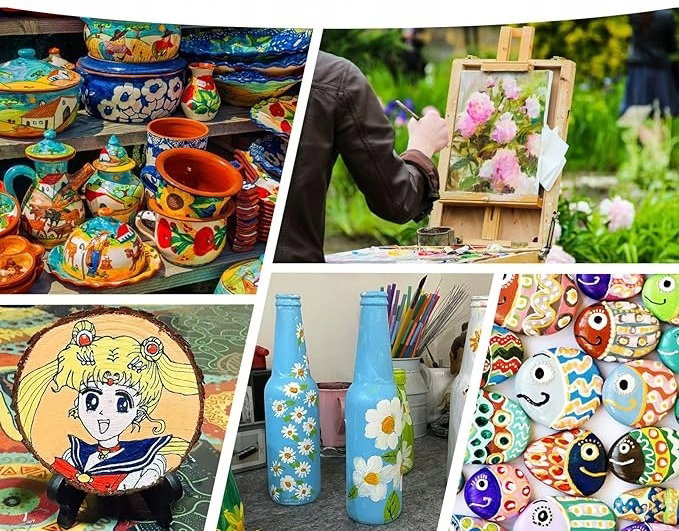 - Zestaw farb akrylowych jest wszechstronny i nadaje się do wielu technik malarskich, takich jak malarstwo abstrakcyjne, projekty DIY, sztuka płynna oraz malowanie na różnych powierzchniach. Farby są idealne do rysowania, malowania obrazów, a także tworzenia oryginalnych dzieł sztuki.