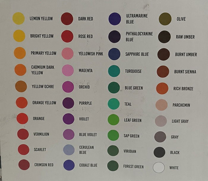 Farby akrylowe mogą być stosowane na szerokiej gamie powierzchni, w tym na płótnie, papierze, drewnie, metalu, plastiku i innych. Są dostępne w metalowych tubkach i występują w 24 kolorach. Farby akrylowe można mieszać z innymi farbami akrylowymi w celu uzyskania niestandardowych kolorów, rozcieńczać wodą w celu uzyskania przezroczystych podkładów lub stosować bezpośrednio z tuby w celu uzyskania nieprzezroczystego pokrycia.
