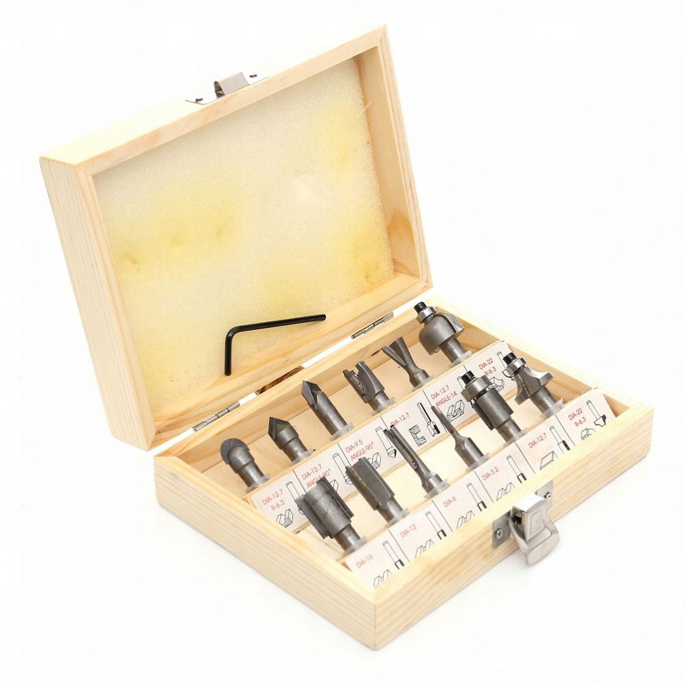 Zestaw 12-stu starannie dobranych frezów daje Ci wielkie możliwości wykonania każdego projektu. W celu bezpiecznego przechowywania narzędzi, zestaw ten jest oferowany w praktycznym, wykonanym z twardego drewna pudełku. Frezy wysokiej jakości ze stali węglowej z ostrzami wykonanymi z węglika wolframu.Frez posiada zamocowanie we wrzecionie o średnicy 8 mm.