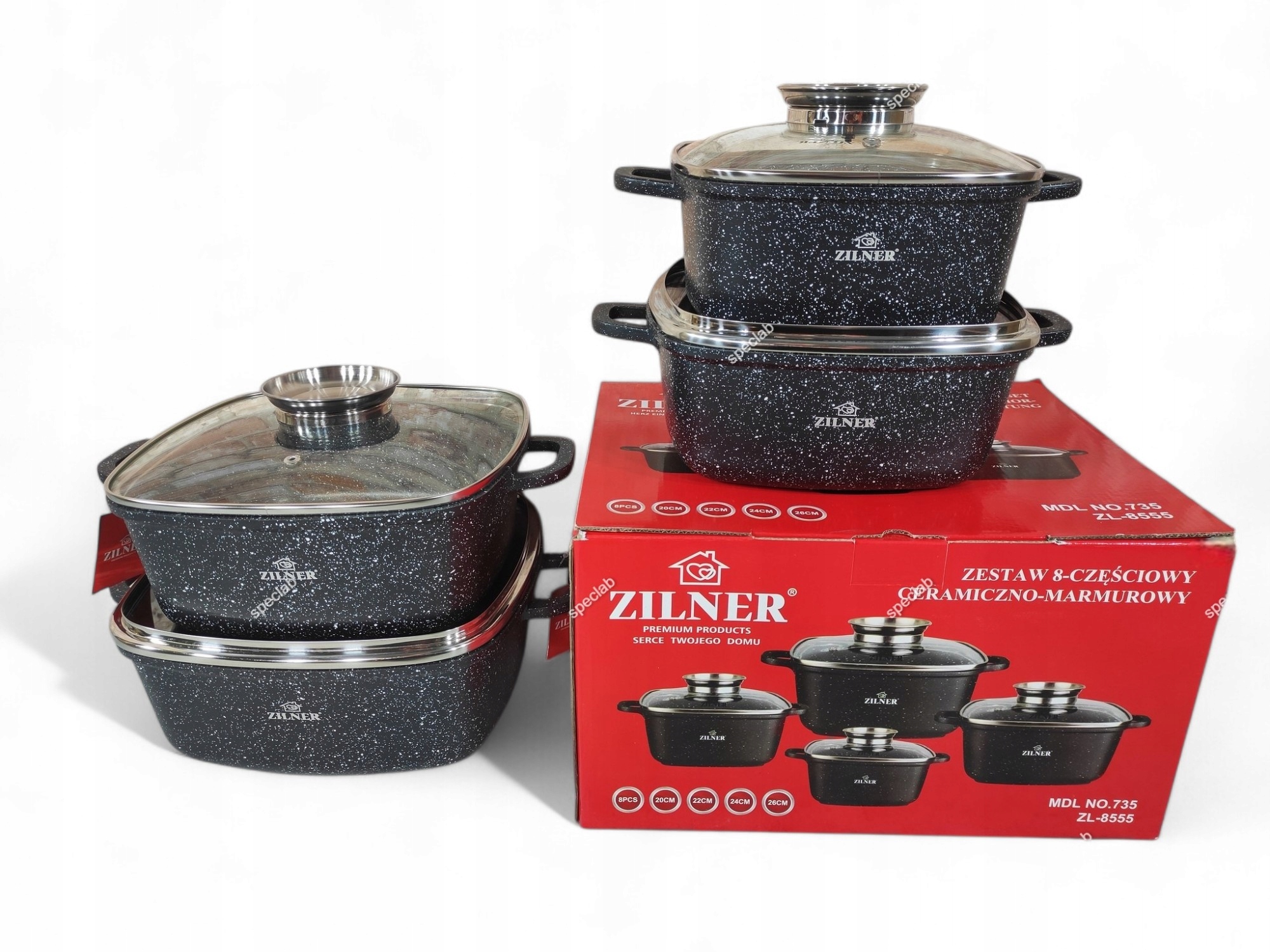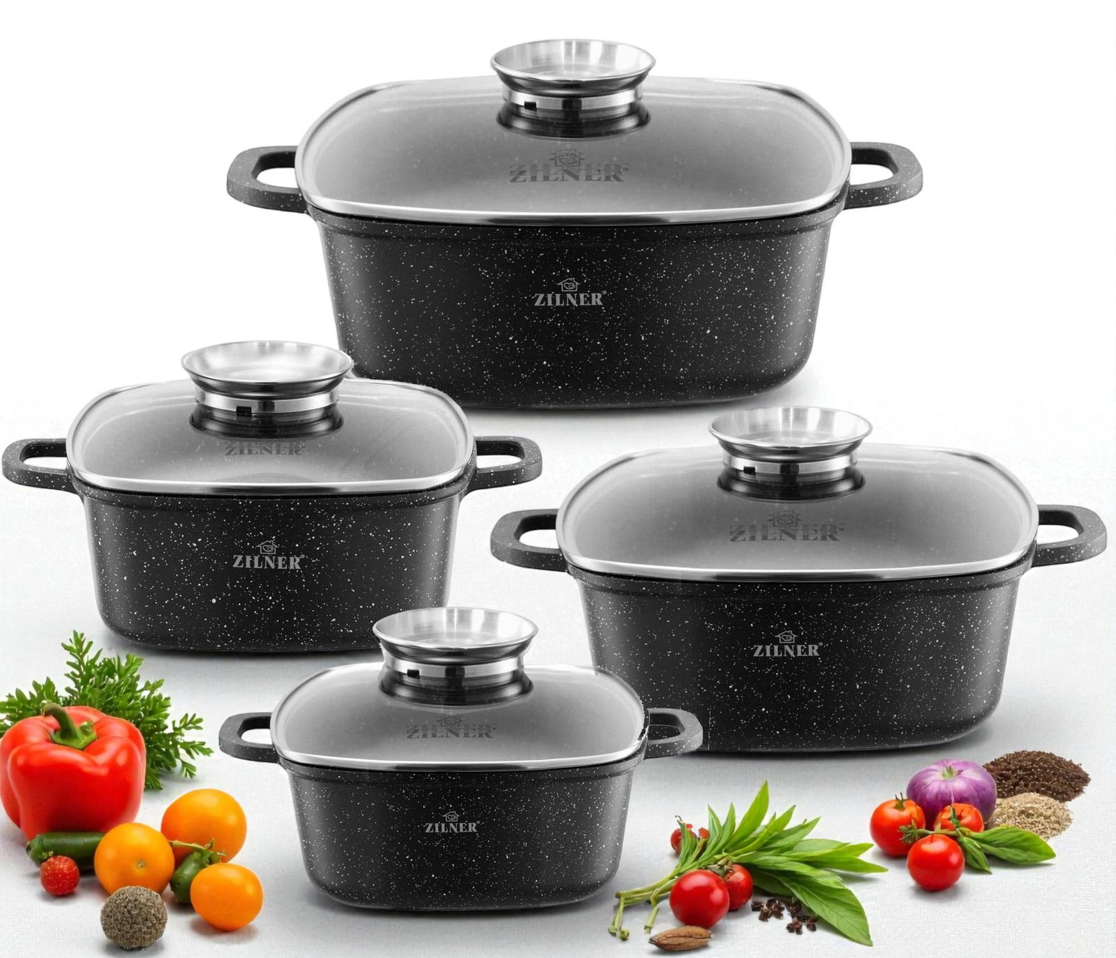 Zestaw garnków Zilner aluminiowe 8 el.ZL 8555 Komplet garnków kwadratowych
