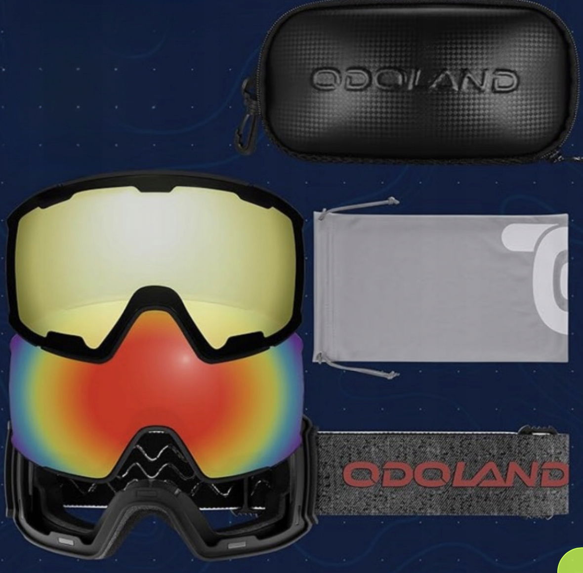 Zestaw gogli narciarskich Odoland to idealny wybór dla miłośników sportów zimowych. Dzięki wymiennym magnetycznym soczewkom możesz szybko dopasować gogle do każdych warunków pogodowych – słonecznych, pochmurnych czy nocnych.