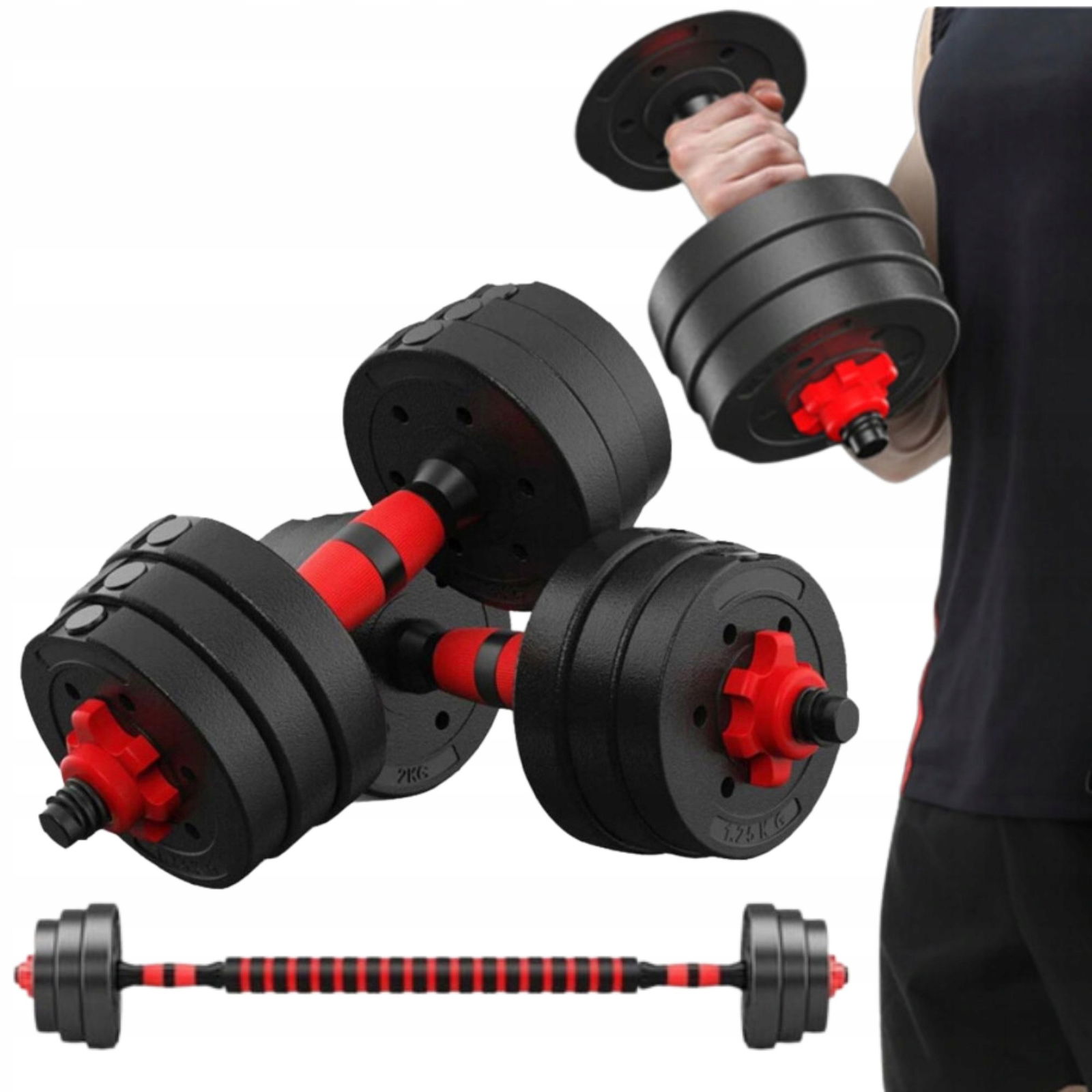 [Połączenie trzy w jednym]: dzięki listwie hantli i listwie przedłużającej można łatwo zmienić hantle w hantle. Można również dostosować opcje ważenia do ustawień treningu.