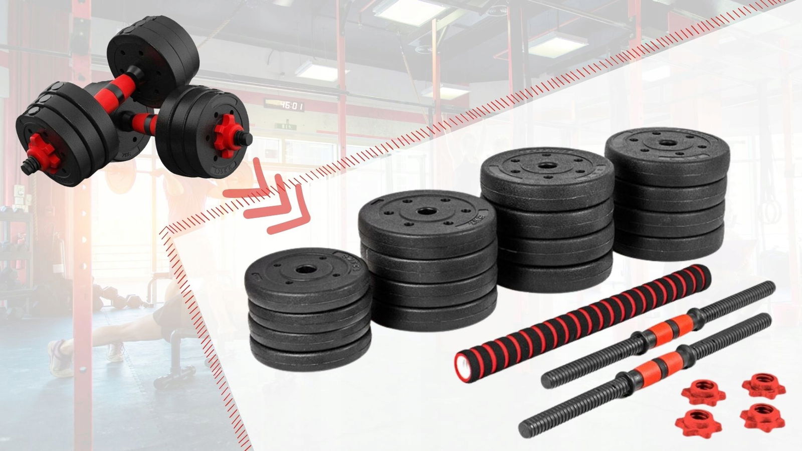 [UWAGA]: Waga hantli = waga płyty do hantli + waga akcesoriów. Na przykład hantle 10 kg = 9 kg obciążniki + 1 kg akcesoriów. Regulowana konstrukcja płyty obciążeniowej, dzięki czemu można zmienić płytę obciążeniową zgodnie z własnym limitem wagowym.