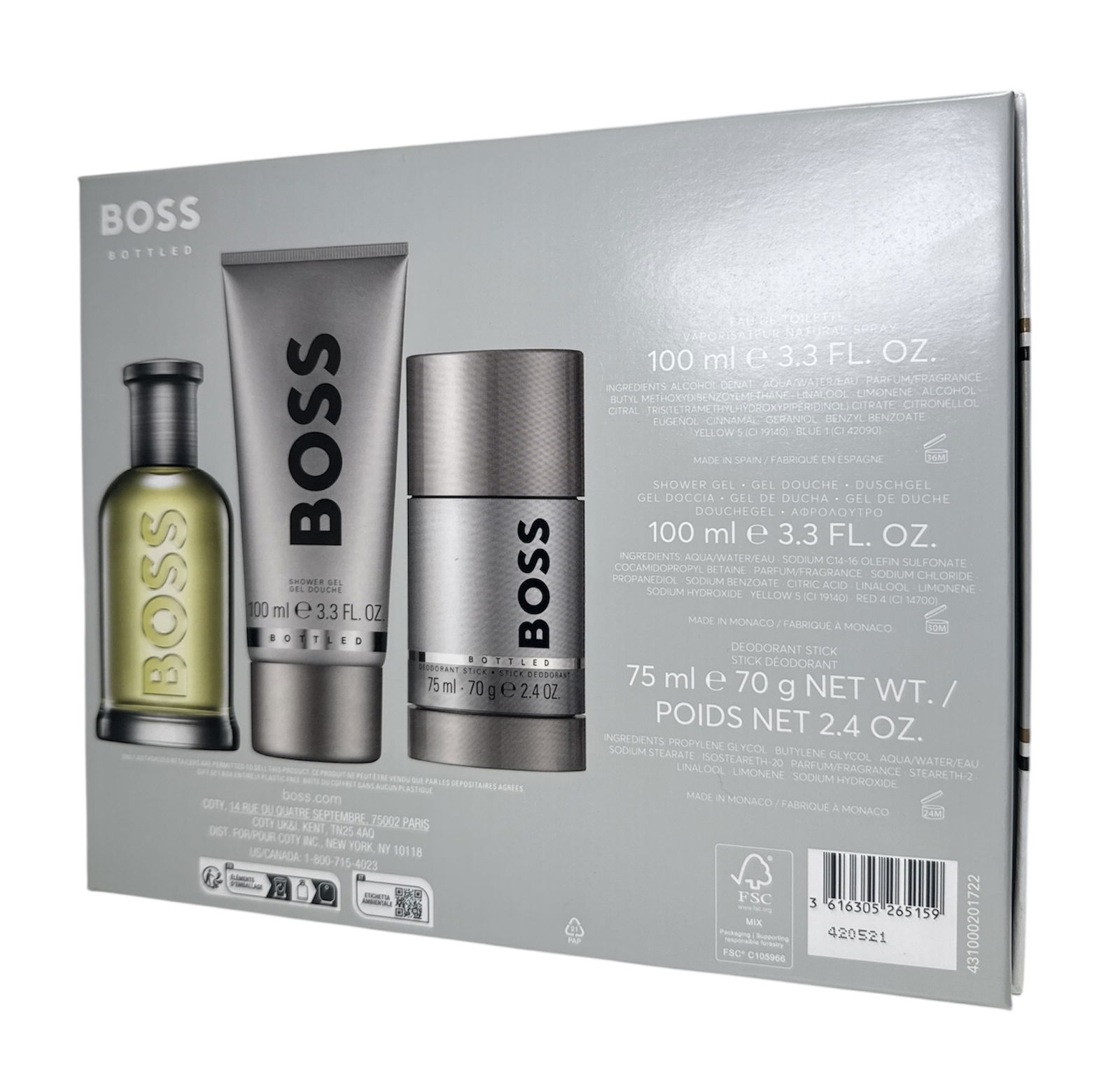 Hugo Boss Bottled woda toaletowa 100 ml + deo sztyft 75 ml + żel pod prysznic 100 ml