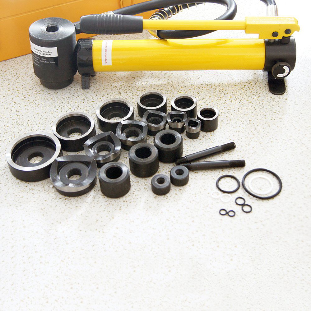 Zwiększ swoją grę dzięki naszemu doskonałemu hydraulicznemu narzędziu udarowemu! Energooszczędny układ hydrauliczny i ergonomiczna konstrukcja zapewniają łatwe dziurkowanie. Uniwersalność tego narzędzia przejawia się w szerokiej gamie wykrojników, które pozwalają na wykrawanie otworów o różnych rozmiarach. Czy to na placu budowy, czy podczas prac konserwacyjnych, ten zestaw przebijaków hydraulicznych jest uosobieniem lekkości, wydajności i ergonomicznej konstrukcji. Ulepsz swój zestaw narzędzi już dziś i spraw, aby dziurkowanie było dziecinnie proste!