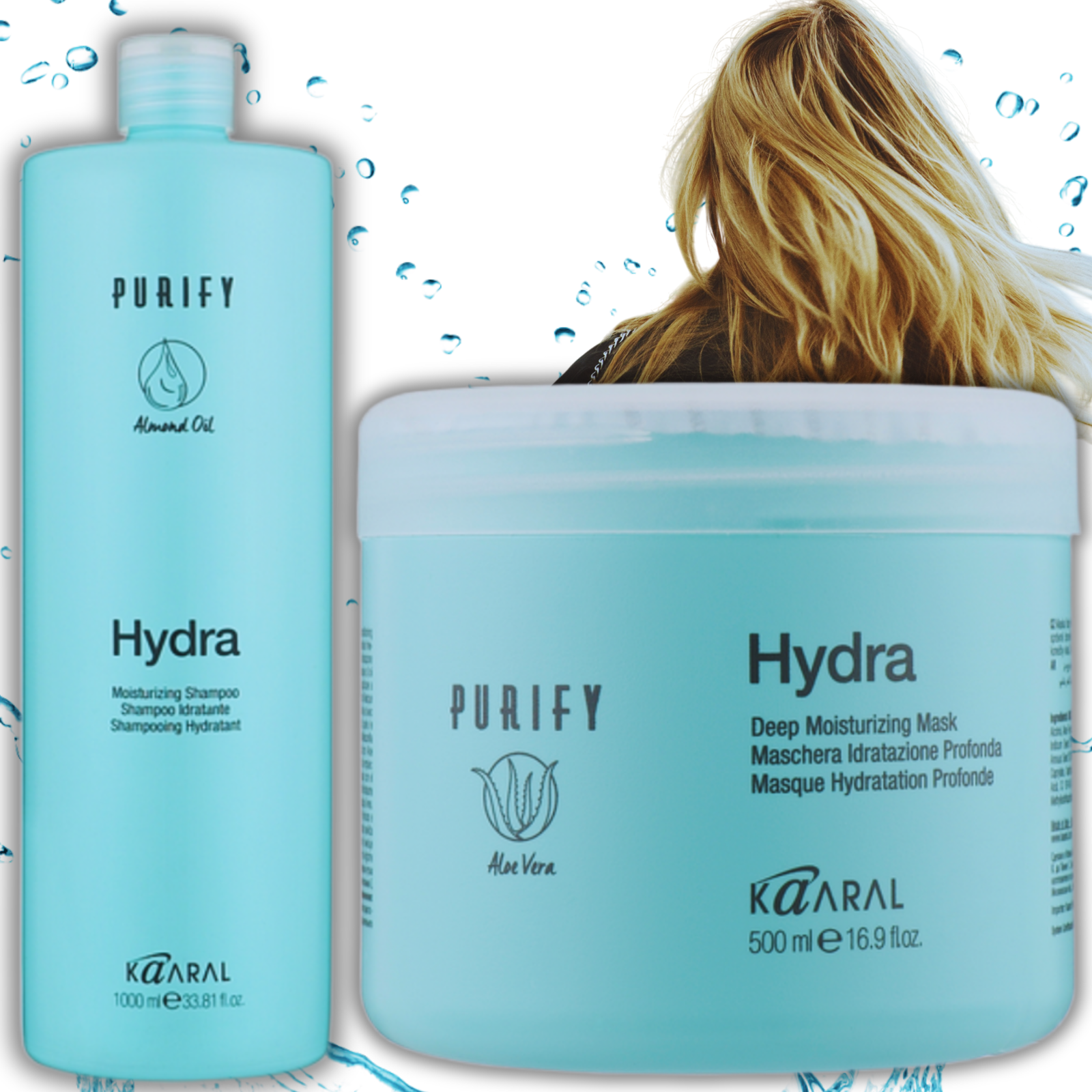 ZESTAW Kaaral Hydra do Włosów Profesjonalne Nawilżenie Szampon 1L + Maska 500ml