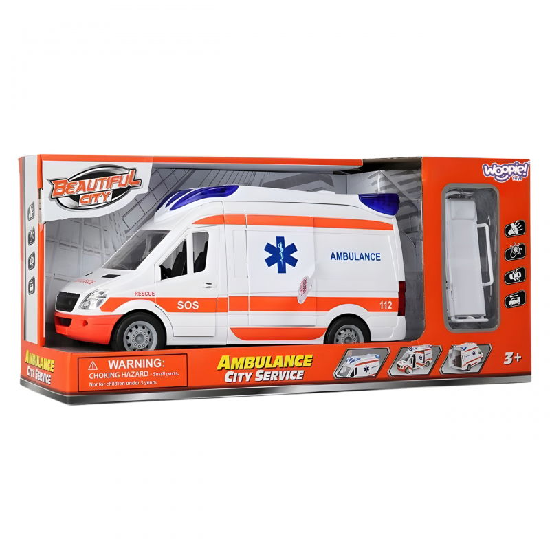 Wprowadź małego ratownika w świat akcji z realistyczną zabawką Karetka pogotowia Ambulans! Ta interaktywna karetka pogotowia zachwyci malucha efektami świetlnymi i dźwiękowymi, takimi jak migające światła, syrena, klakson oraz odgłosy silnika i cofania. Solidna konstrukcja z ruchomymi kołami i napędem ciernym zapewniają długie godziny ekscytującej zabawy na różnych powierzchniach. Otwierane drzwi (przód, tył i dach) oraz wyjmowane nosze dodają autentyczności i pozwalają na tworzenie realistycznych scenek ratunkowych. Ta zabawka rozwija wyobraźnię, empatię, sprawność manualną i koordynację wzrokowo-ruchową u dzieci od 3 roku życia.