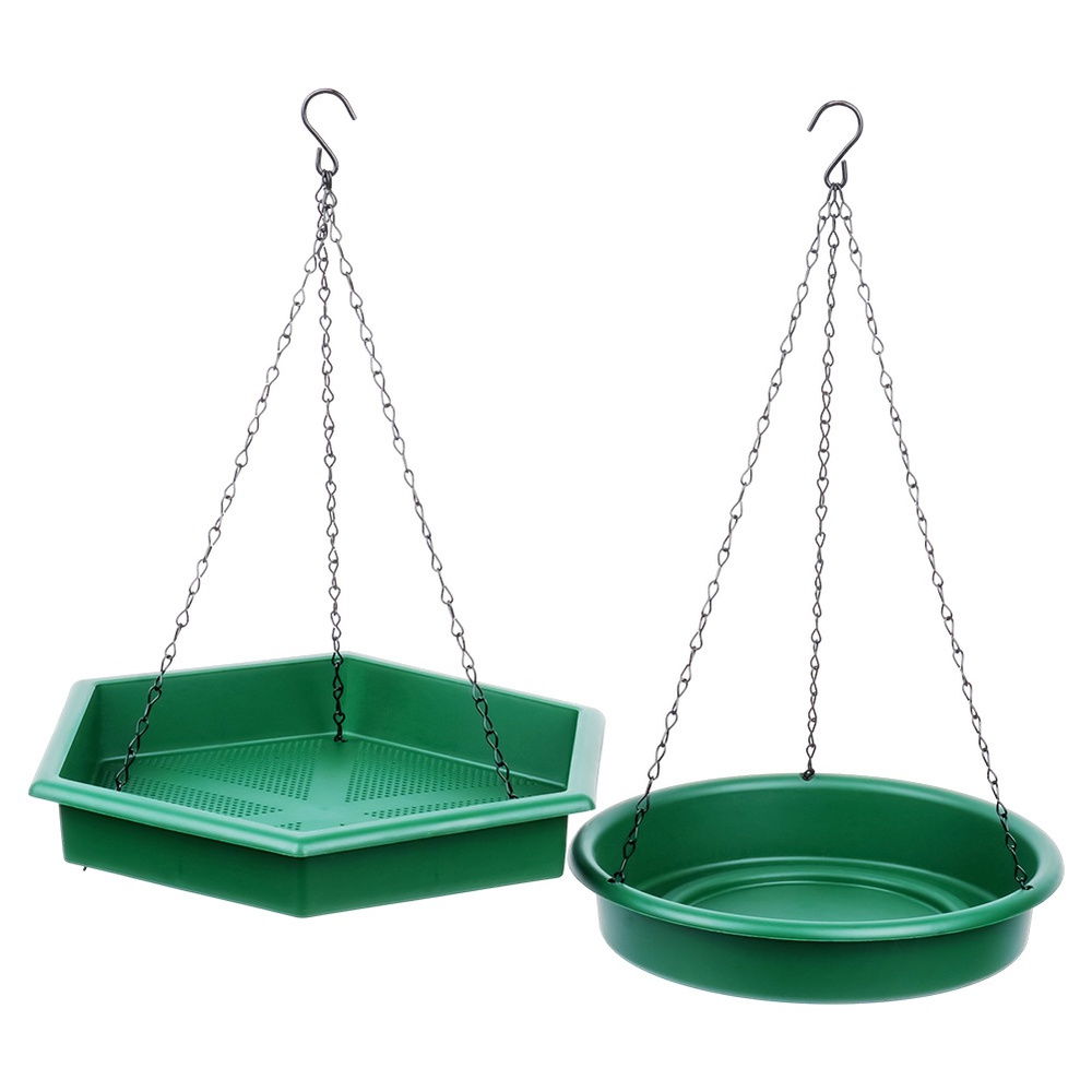 Dwa oddzielna pojemniki - Zestaw zawiera dwa oddzielne pojemniki, które zapewnią kompleksowe dokarmianie i pojenie ptaków. Karmnik ma ażurowe dno, które umożliwia odpływ nadmiaru wody, dzięki czemu karma pozostaje sucha. Poidło to klasyczna miska na wodę, łatwa do napełniania i czyszczenia.