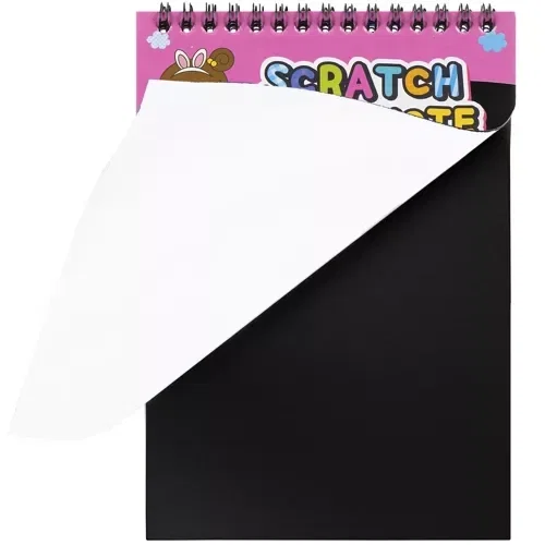 Zestaw kartek do zdrapywania to nowoczesna forma zabawy uruchamiająca u dziecka wyobraźnię już od najmłodszych lat. Sprawi ona, że Twoje dziecko rozwinie kreatywność oraz zdolności manualne. Będzie to świetna alternatywa dla zwykłego rysowania kredkami. Zabawa polega na wydrapywaniu wierzchniej, czarnej powłoki w taki sposób aby powstał obrazek. Maluch ma nieograniczone możliwości w tworzeniu kształtów oraz rysunków, które z pewnością będą o wiele ciekawsze od tych standardowych. Kartki zdrapywanki są małe i przenośne, co czyni je łatwymi do zabrania ze sobą np. w podróż.