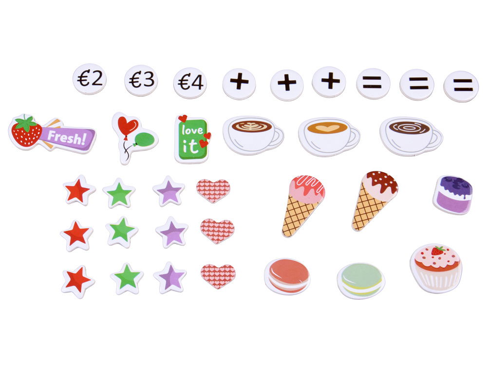 W zestawie znajdziesz kubeczki, talerzyki, drewniane lody w rożkach, babeczki, ciasteczka, makaroniki, łyżeczki, szpatułkę, mleczko, płynny cukier i wiele innych akcesoriów, które rozbudzą wyobraźnię dziecka i zapewnią mnóstwo możliwości zabawy. Zabawka wspiera rozwój wyobraźni, koordynacji oraz umiejętności społecznych, dlatego jest doskonałą zabawką edukacyjną dla dzieci już od 3. roku życia.