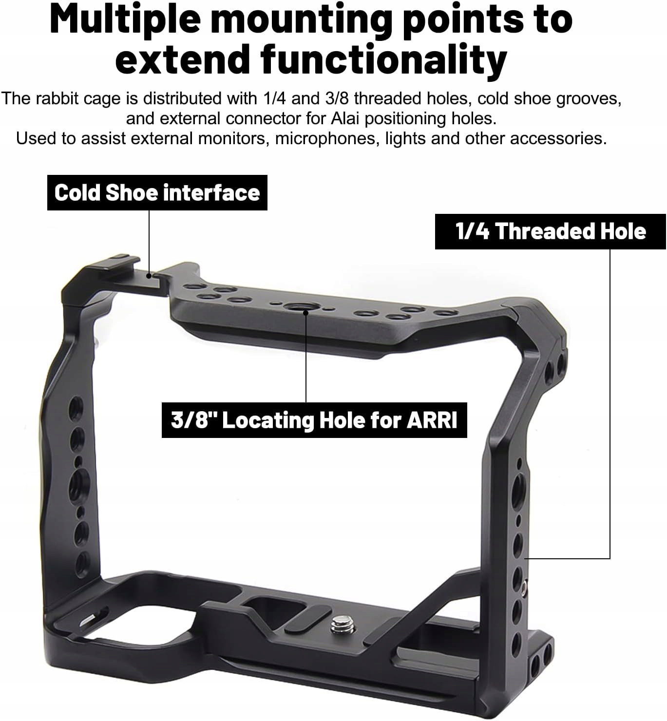 Wysoka jakość wykonania z aluminium zapewnia trwałość oraz odporność na zużycie. Zimne buty i otwory Arri 3/8 cala umożliwiają bezpieczne mocowanie dodatków.