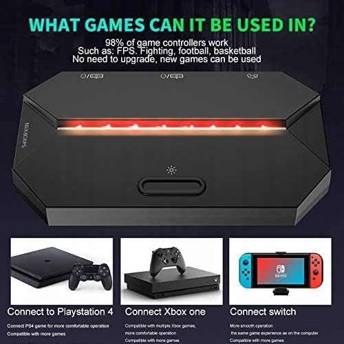 【Konwerter klawiatury i myszy】 Dzięki temu konwerterowi możesz cieszyć się grami FPS na PS4/Xbox One/Xbox 360/Switch/PS3 z przewodową klawiaturą i myszą USB. Doskonały do FPS, walki, piłki nożnej, koszykówki itp. Pozwala na lepsze wyniki w różnych grach.