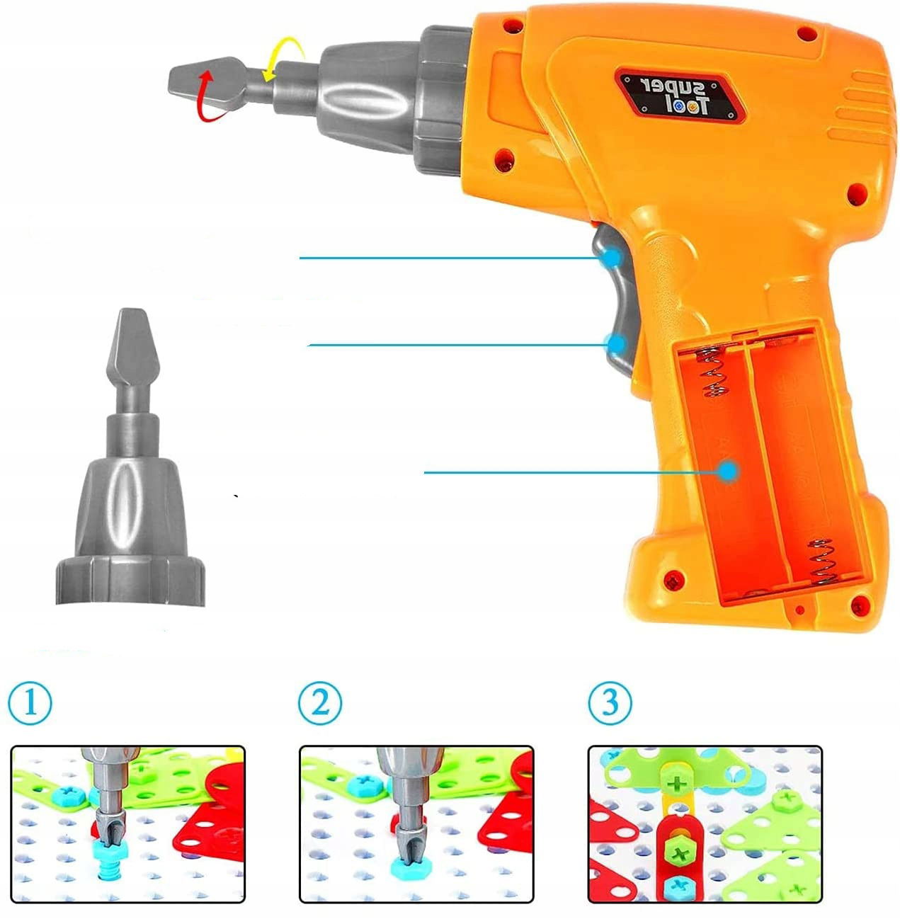 Po włożeniu baterii (2xAA - brak w zestawie) i uruchomieniu wkrętarki, kreci się jak prawdziwe urządzenie. Wkrętarka ma funkcję wkręcania i odkręcania jak prawdziwe urządzenie Taty w garażu !