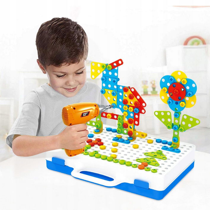 Zadaniem dziecka jest wkręcanie, wykręcanie kolorowych śrubek, łączenie elementów, tworzenie figur i wielkich konstrukcji.