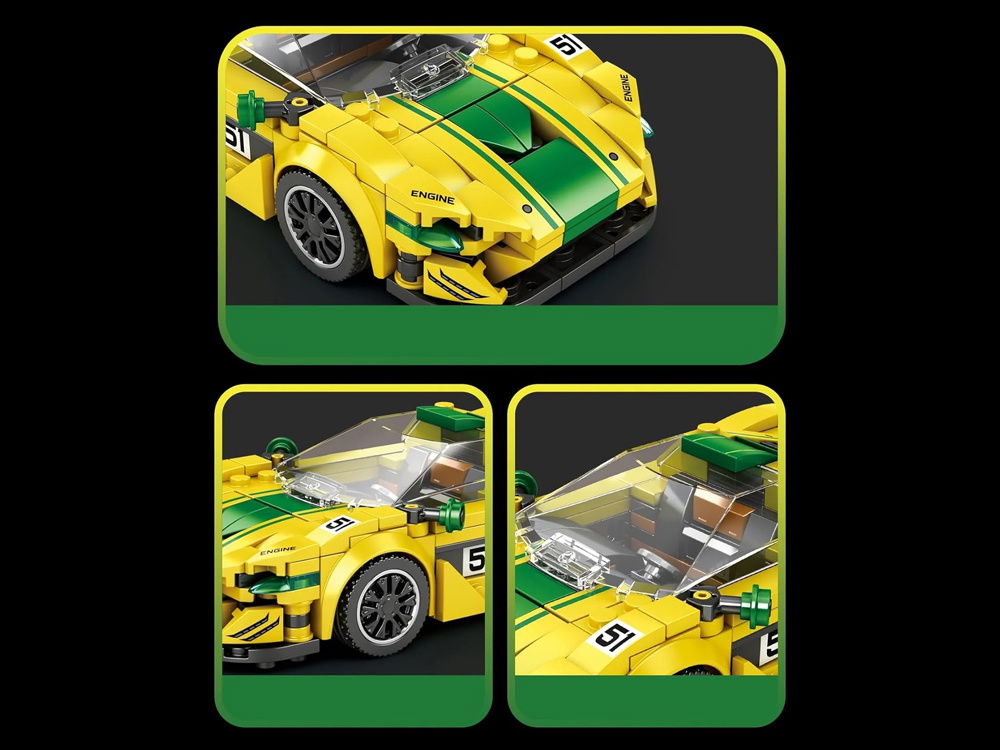 Zestaw klocków technicznych Żółte Supersportowe Auto z Zielonym Pasem to doskonała propozycja dla miłośników nowoczesnych supersamochodów. Model odzwierciedla charakterystyczne cechy wyścigowych aut, takie jak nisko osadzona karoseria, szerokie nadkola i aerodynamiczne kształty, co nadaje mu dynamiczny i agresywny wygląd. W zestawie znajduje się 368 elementów, które umożliwiają stworzenie dopracowanego modelu, zachwycającego detale i ostre linie. Samochód w intensywnym żółtym kolorze z szerokim zielonym pasem biegnącym przez całą długość auta przyciąga uwagę swoim sportowym charakterem. Model prezentuje się realistycznie i będzie doskonałą ozdobą kolekcji lub pokoju. Zestaw dedykowany jest osobom w wieku 14+, a jego średniozaawansowany poziom trudności sprawia, że składanie to ekscytujące wyzwanie, które pozwala poczuć klimat nowoczesnych maszyn wyścigowych. Dynamiczny model supersamochodu, niska aerodynamiczna sylwetka oraz precyzyjne detale sprawiają, że ta konstrukcja jest gotowa do torowych osiągów. Zamów już teraz w sklepie Jokomisiada i ciesz się unikalnym modelem żółtego Supersportowego Auta z Zielonym Pasem!
