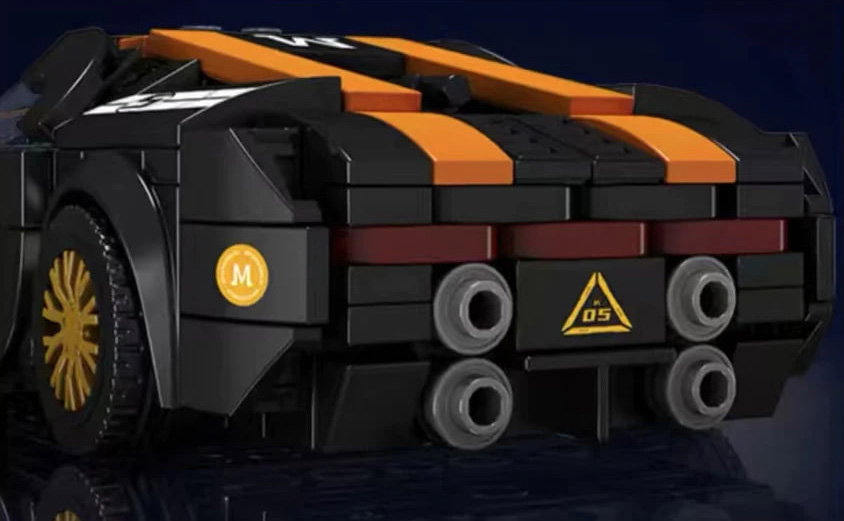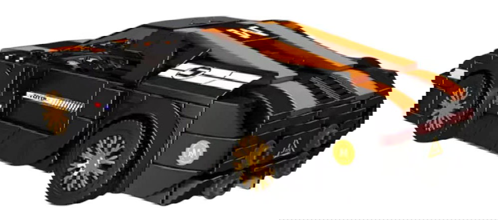 Zestaw 386 klocków konstrukcyjnych do samodzielnej budowy czarno-pomarańczowego samochodu sportowego. Zabawka przeznaczona dla dzieci od 8-go roku życia. Klocki i elementy autka wykonane zostały z wysokiej jakości, wytrzymałego tworzywa sztucznego ABS.