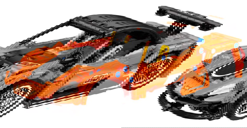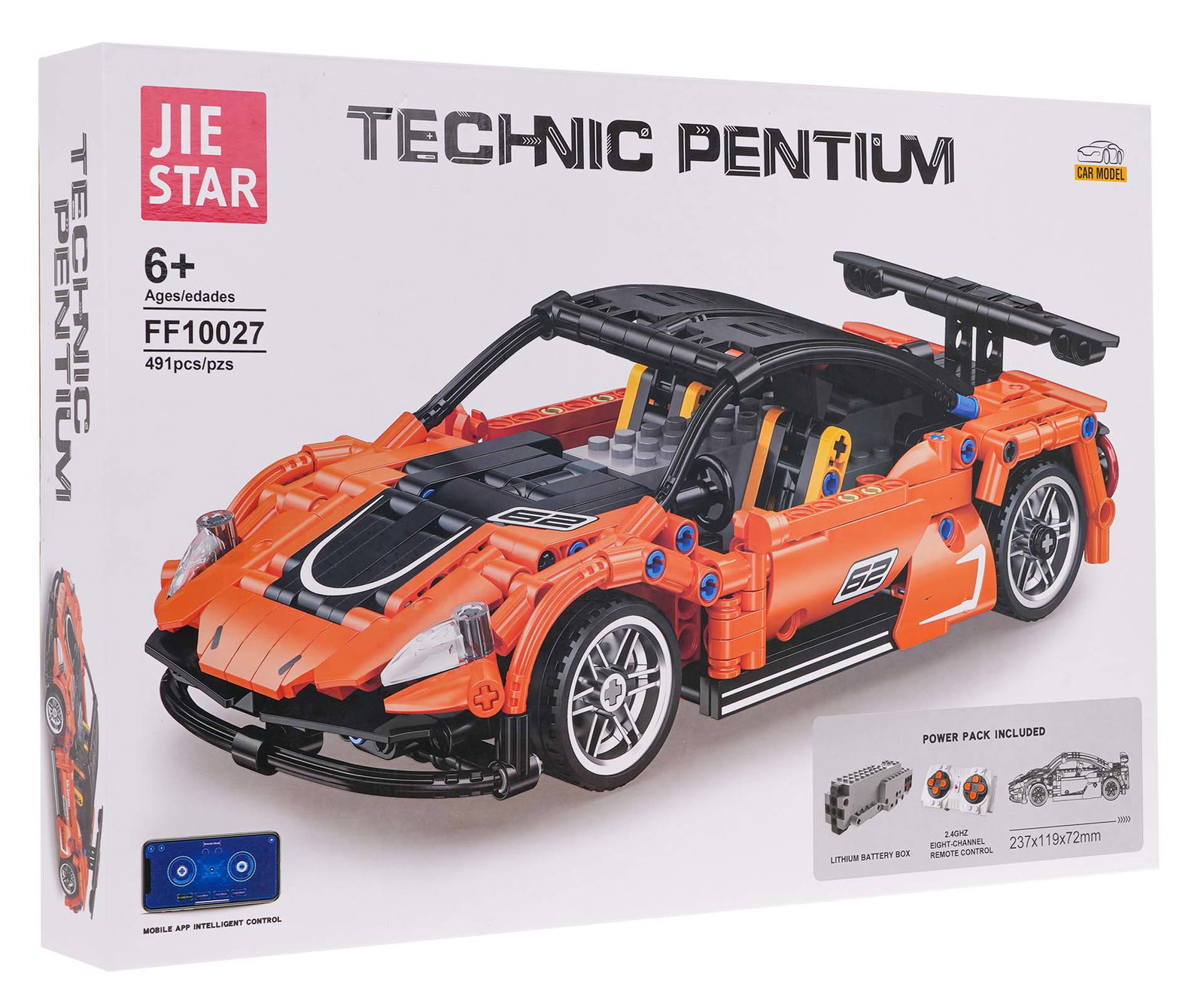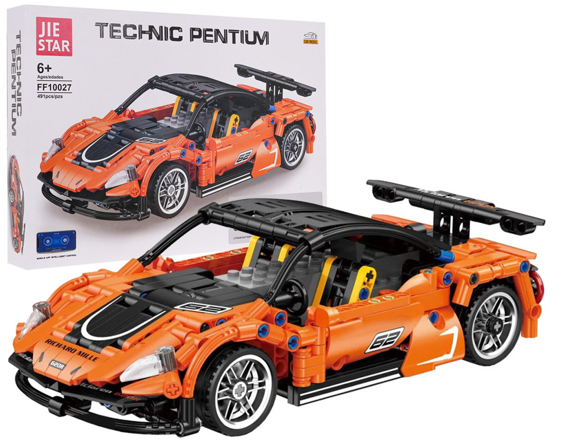Zestaw 491 klocków konstrukcyjnych do samodzielnej budowy pomarańczowego samochodu sportowego z funkcją zdalnego sterowania. Zabawka przeznaczona dla dzieci od 6-go roku życia. Klocki i elementy autka wykonane zostały z wysokiej jakości tworzywa sztucznego. Auto posiada ruchome elementy, jak otwierane drzwi i maskę.