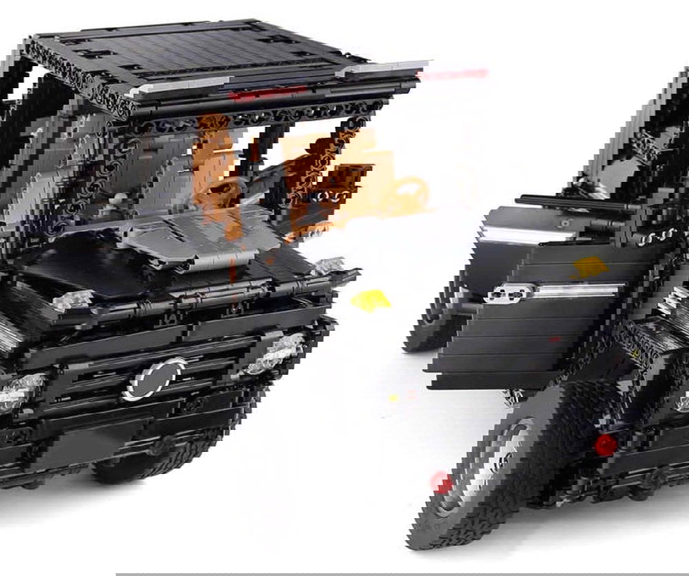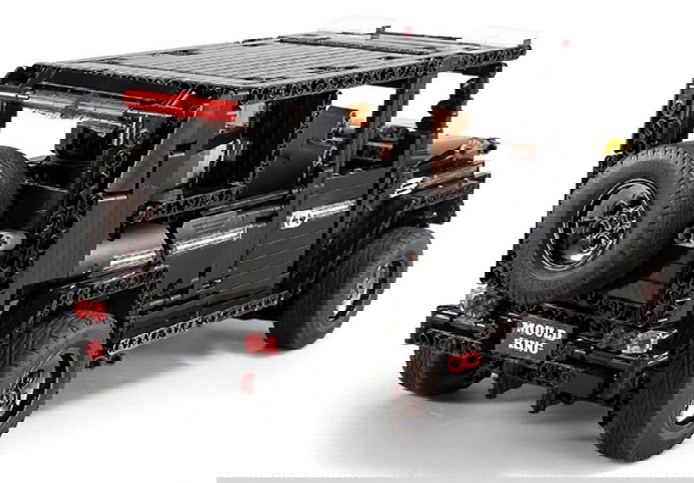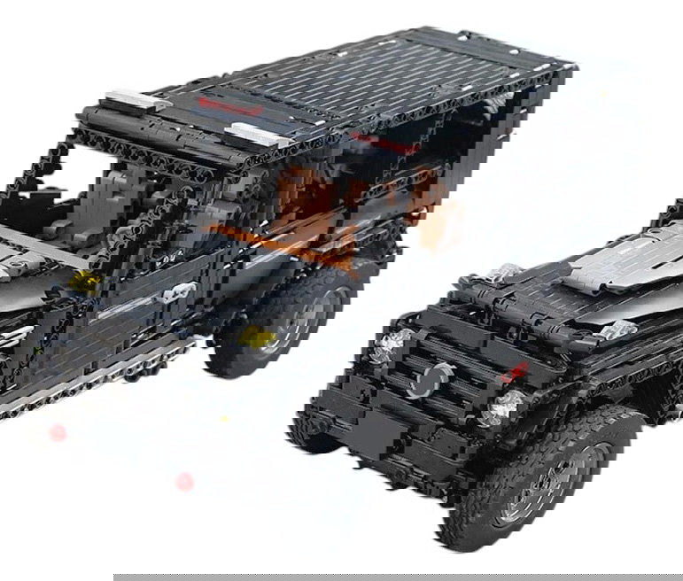 Zestaw 1722 klocków konstrukcyjnych do samodzielnej budowy czarnego samochodu terenowego. Model wykonany w skali 1:10. Zabawka przeznaczona dla dzieci od 14-go roku życia. Klocki i elementy autka wykonane zostały z wysokiej jakości tworzywa sztucznego oraz materiału z włókna węglowego.