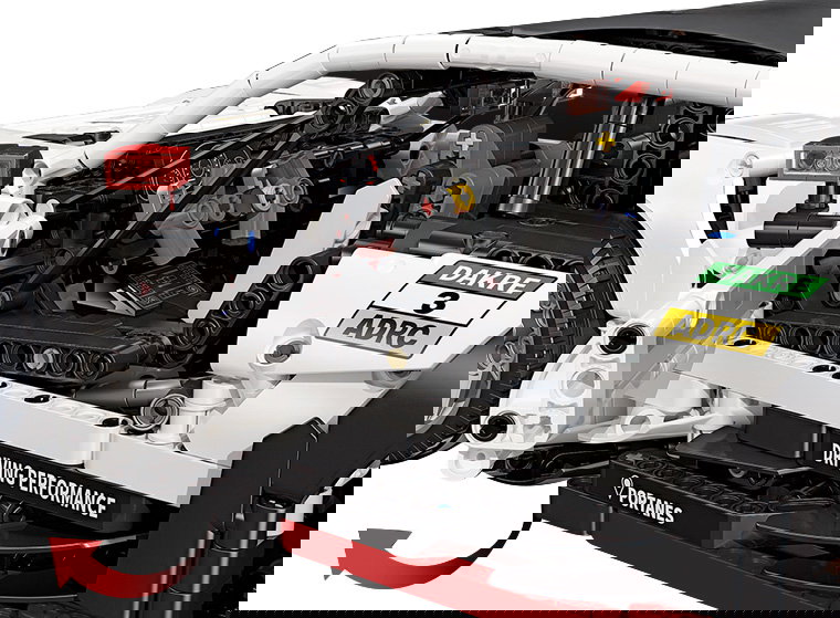 Zestaw 2489 klocków konstrukcyjnych do samodzielnej budowy czerwonego samochodu sportowego. Zabawka przeznaczona dla dzieci od 8-go roku życia. Klocki i elementy autka wykonane zostały z wysokiej jakości tworzywa sztucznego.