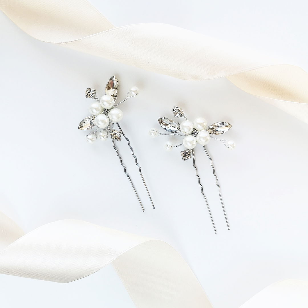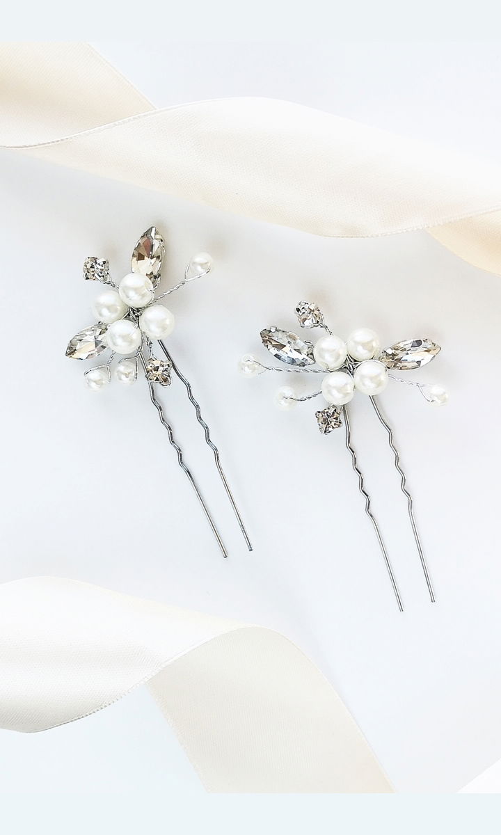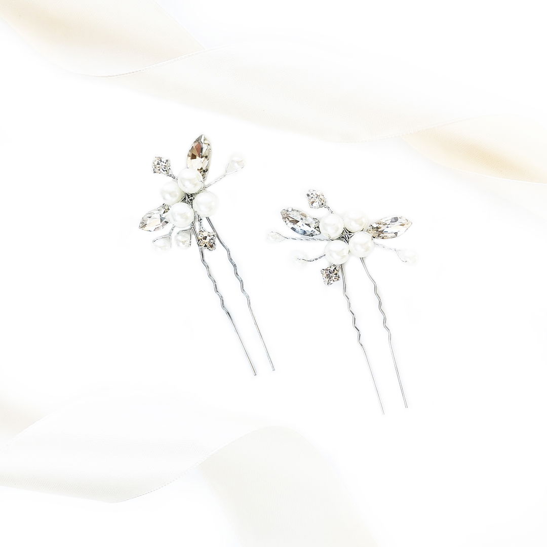Komplet dwóch kokówek ślubnych sprawdza się zwłaszcza jeśli nie do końca wiesz jak będzie wyglądała Twoja ślubna fryzura. Dzięki rozdzielności możesz je wpiąć w dowolne miejsce fryzury osobno, tylko akcentując obecność biżuterii we włosach, lub wpinając razem stwarzając mini grzebyk. Decyzja należy do Ciebie.