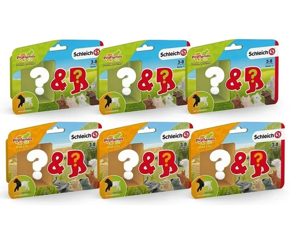 Z tą nową zabawką Schleich możesz tworzyć super zabawne kombinacje; tak często i tak szaleńczo, jak tylko zechcesz. Przód i tył figurek zwierzątek można połączyć za pomocą systemu kołków. Seria 1 zawiera łącznie sześć kolekcjonerskich figurek Farm World, które można ze sobą łączyć. Zwierzęta Farm World Puzzlemals można również łączyć ze zwierzętami z serii Wild Life Puzzlemals!
