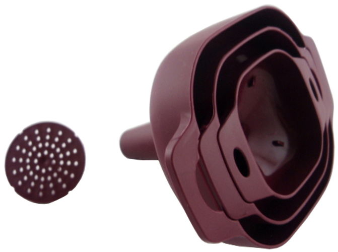 Oferujemy Państwu zestaw 3 praktycznych lejków kuchennych. W zestawie jest praktyczne sitko, które można umieścić w każdym lejku. Na tej aukcji dostępny kolor BORDOWY. Inne kolory dostępne są na innych naszych aukcjach.
