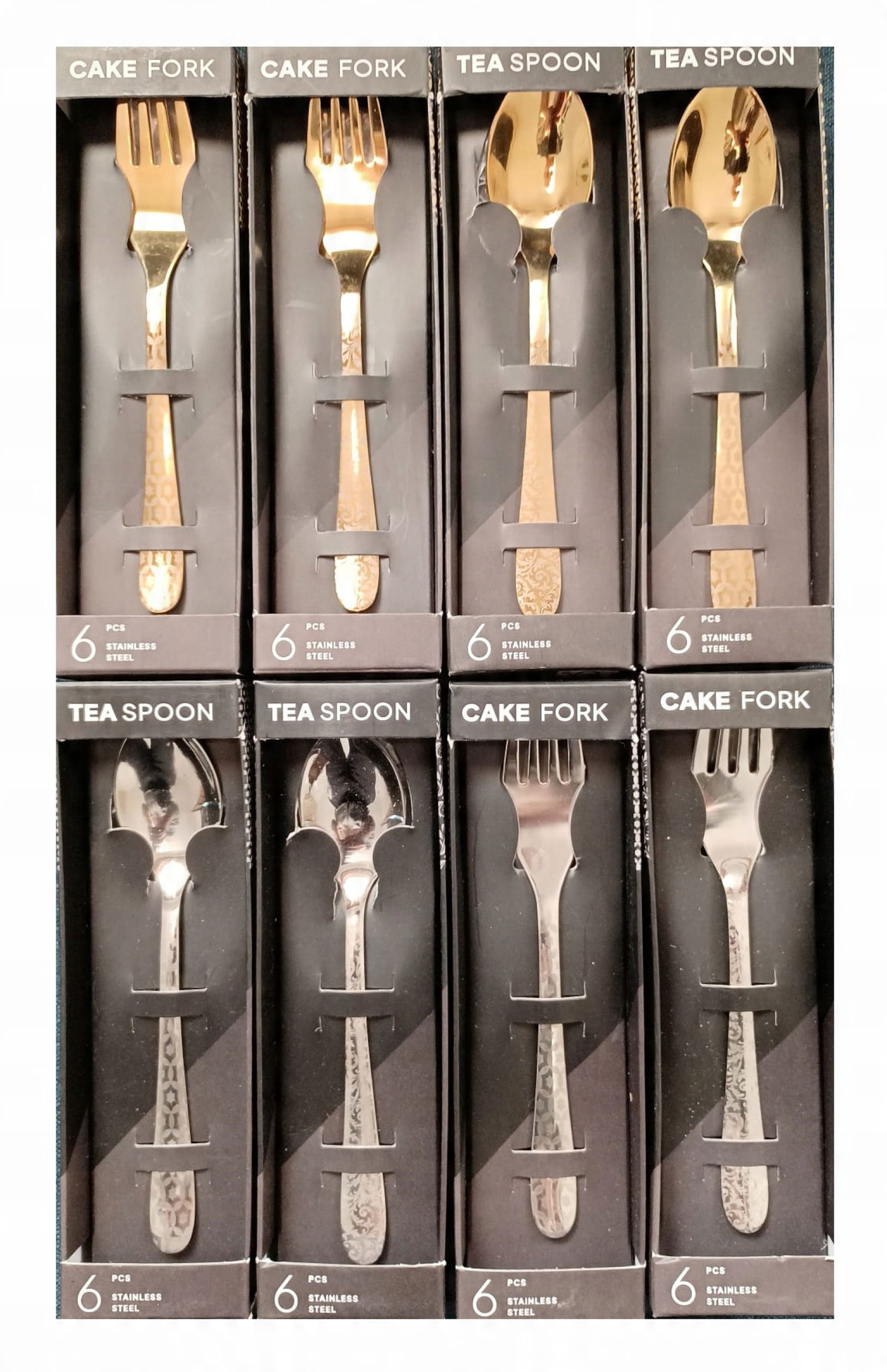 Zestaw Komplet sztućców łyżeczek deserowych SREBRNE Z GRAFIKĄ 6 sztuk
