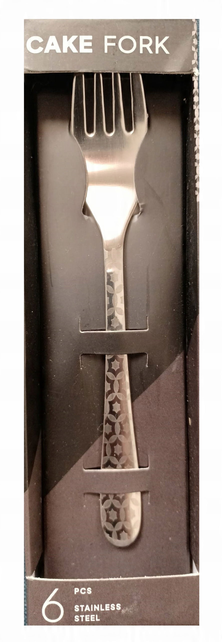 Zestaw Komplet sztućców widelczyki deserowe SREBRNE Z GRAFIKĄ 6 sztuk