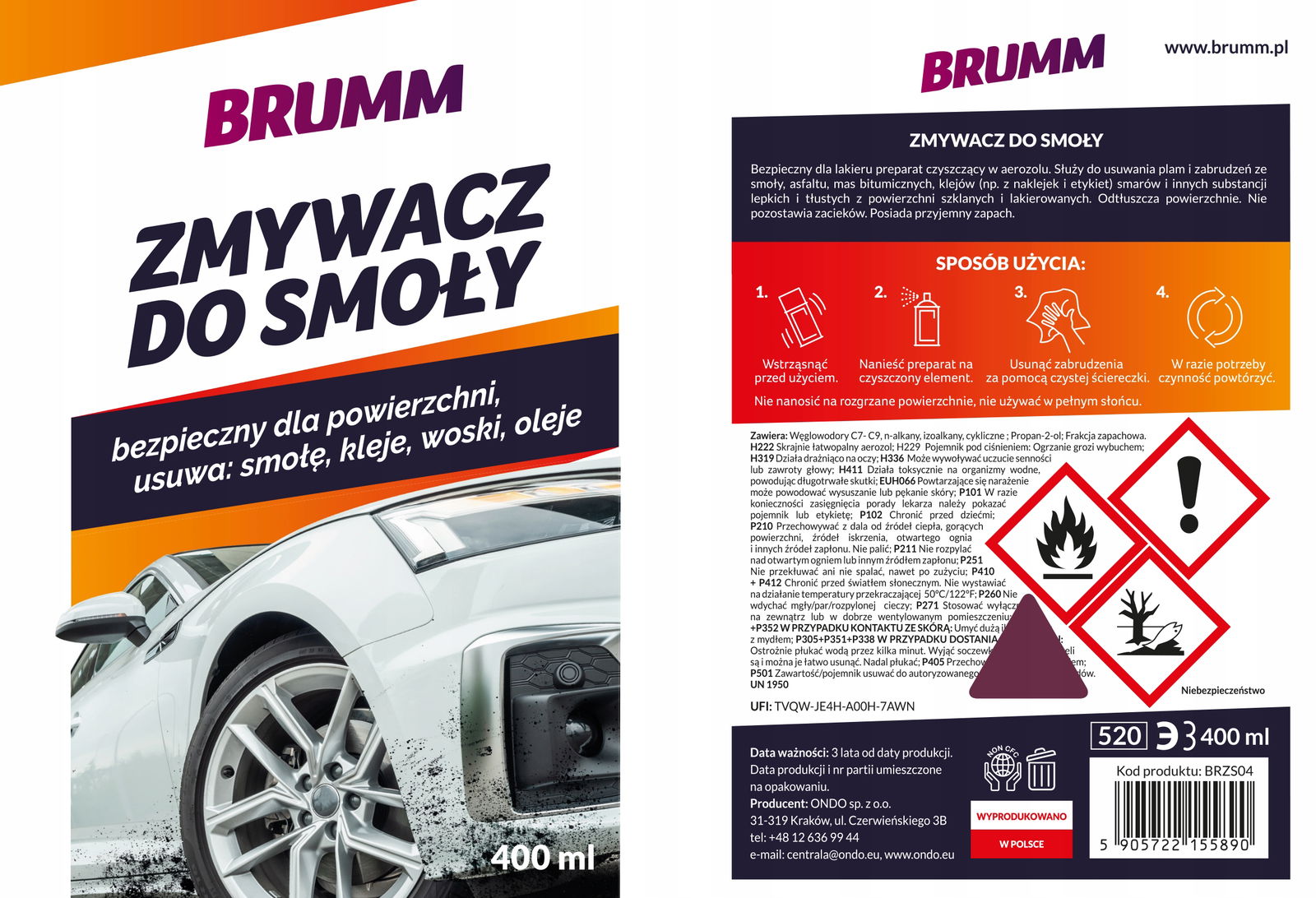 ✅ BRUMM ZMYWACZ DO SMOŁY 400 ml - bezpieczny dla lakieru preparat czyszczący w aerozolu.
