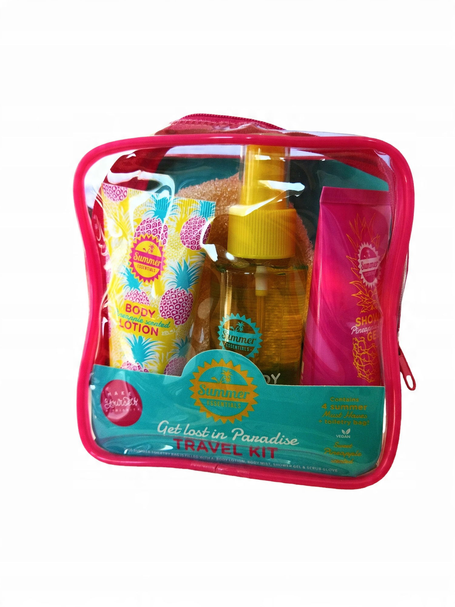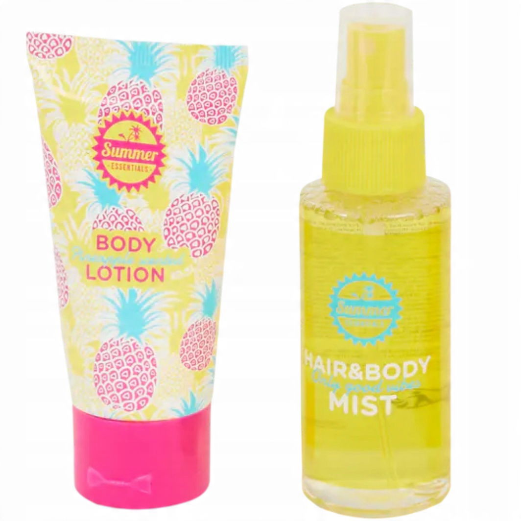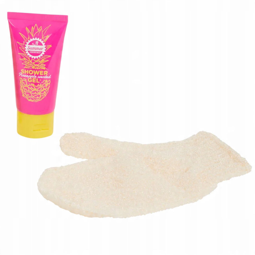 Dzięki zestawowi podróżnemu masz pod ręką wszystkie przybory do pielęgnacji podczas wakacji. Zestaw składa się z poręcznego etui, rękawicy do peelingu, emulsji do ciała, żelu pod prysznic oraz mgiełki do włosów i ciała.