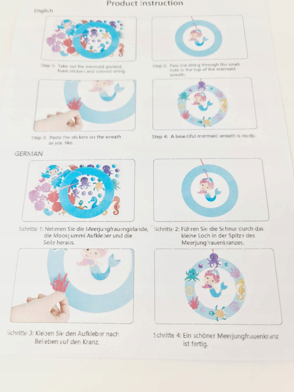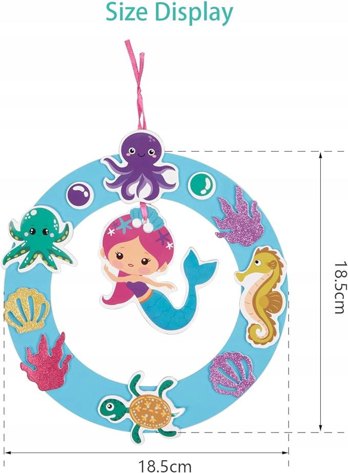 Kreatywne rękodzieło dla dzieci: rękodzieło z kręgu syreny jest bardzo odpowiednie dla dzieci, które lubią syreny. Dzieci mogą zaprojektować niepowtarzalny wianek według własnych pomysłów. Można go zawiesić na bramie lub zawiesić na ścianie jako dekorację przyjęcia z motywem syreny lub morza.