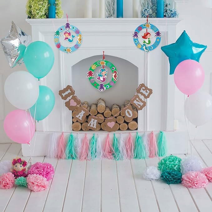 Szeroki zakres zastosowań: ręcznie robione girlandy syreny doskonale nadają się na imprezy tematyczne dla dzieci, takie jak syrena, ocean itp. Mogą być używane jako dekoracja przyjęcia urodzinowego, nagrody w grach towarzyskich i nie tylko.