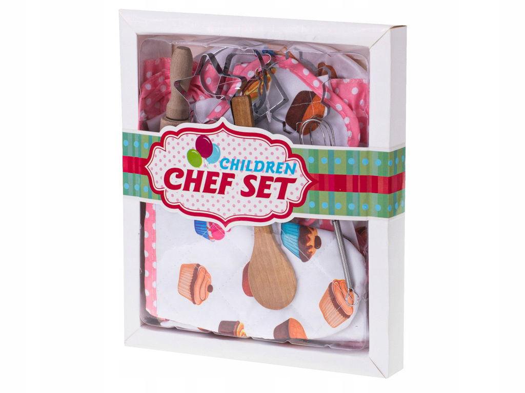 ✔️ Oprócz ubrań rodem z profesjonalnej kuchni, do dyspozycji dziecka jest też szereg akcesoriów: wałek, łyżka, foremki i mieszadło.