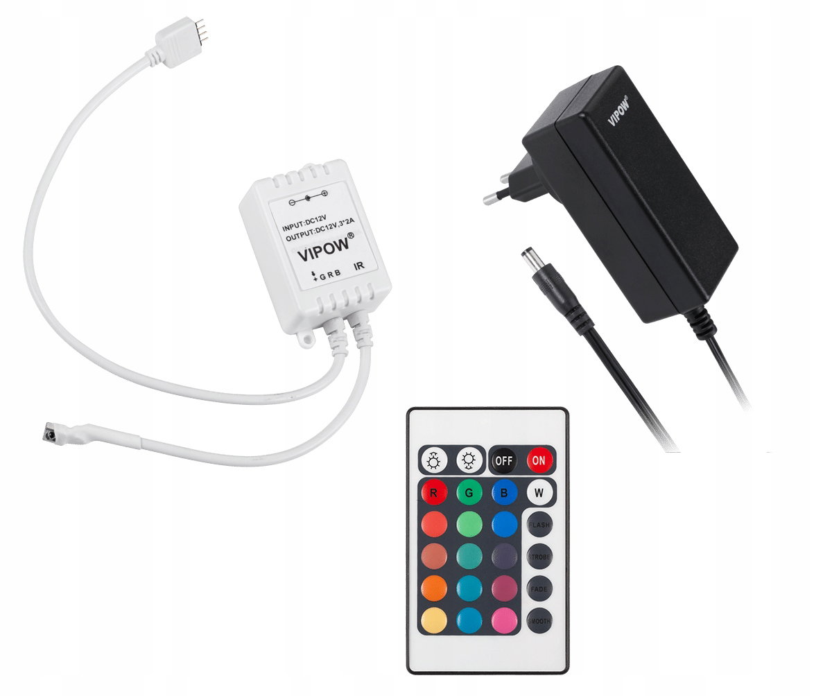 Zestaw LED RGB na pilot (sznur diodowy 150x5050SMD + zasilacz + kontroler)