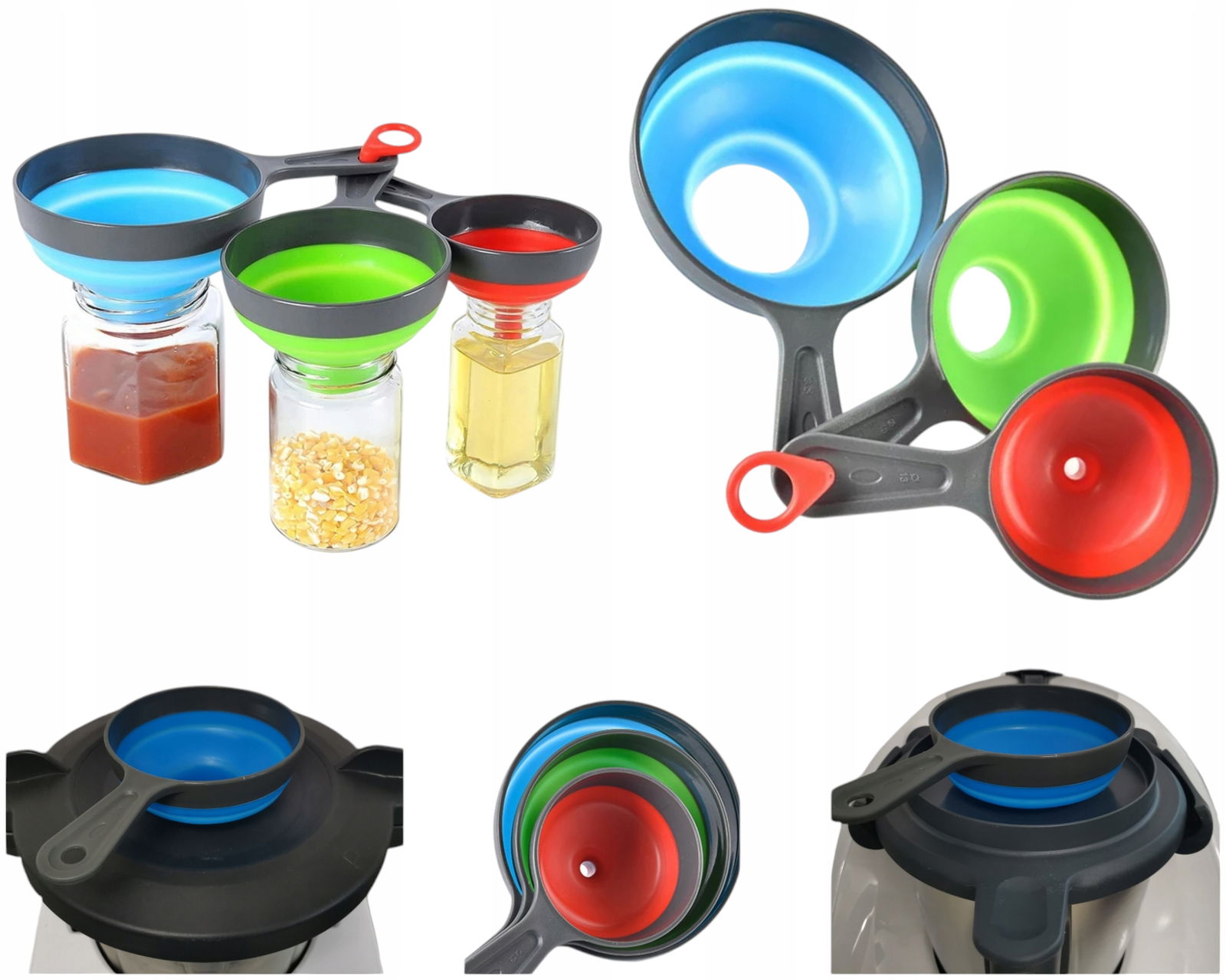 ZESTAW 3 LEJEKÓW silikonowych składanych do przetworów.