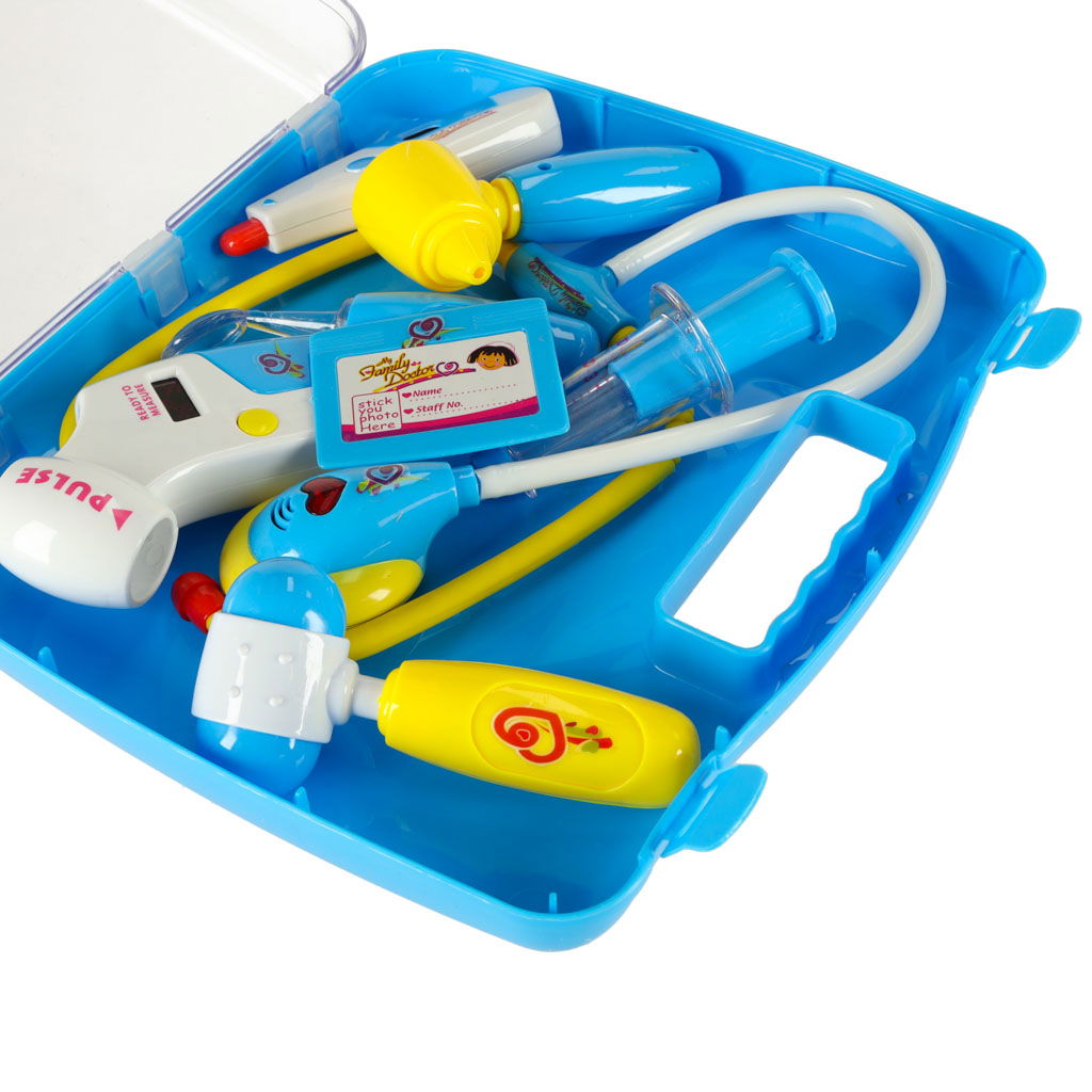PRAKTYCZNY ZESTAW GOTOWY DO ZABAWY - W skład zestawu wchodzi aż dziewięć różnych przyrządów medycznych, takich jak stetoskop, termometr, młotek neurologiczny czy przyrząd do badania uszu. Każdy z nich wykonano z lekkiego, bezpiecznego tworzywa. Całość zaprojektowano z myślą o małych dłoniach, co zapewnia wygodę użytkowania i trwałość w codziennej zabawie.