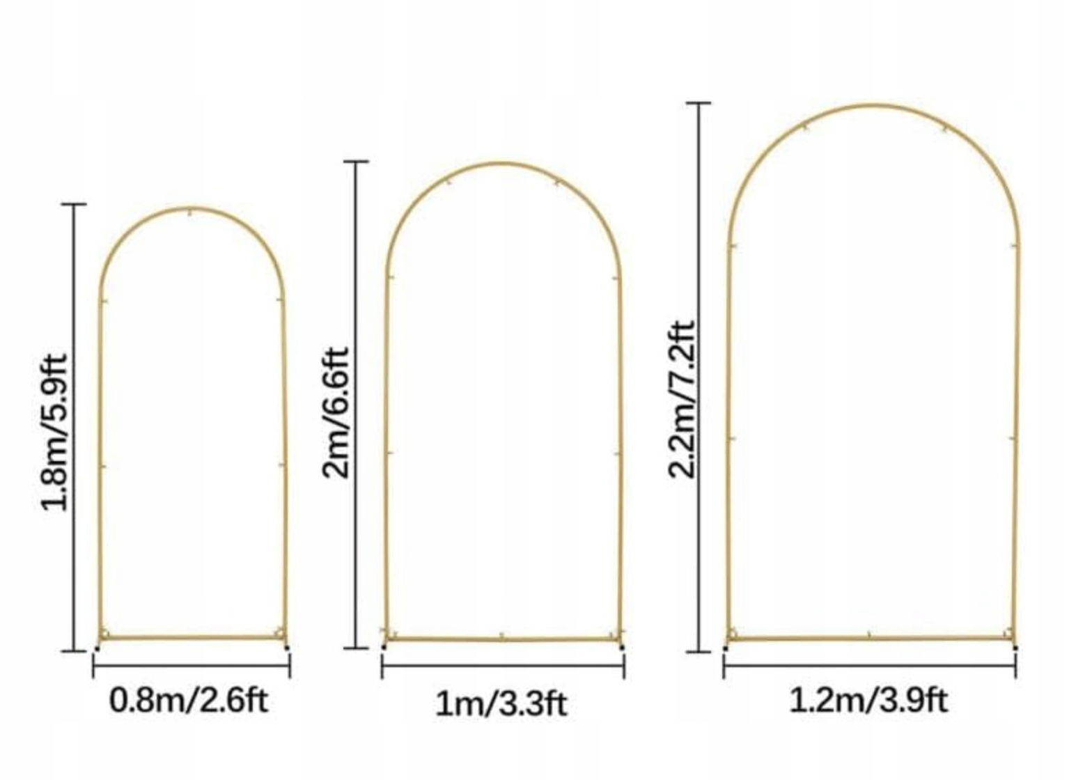 Zestaw łuków ślubnych złotych z pokrowcami białymi 2,2 m, 2,0 m, 1,8 m