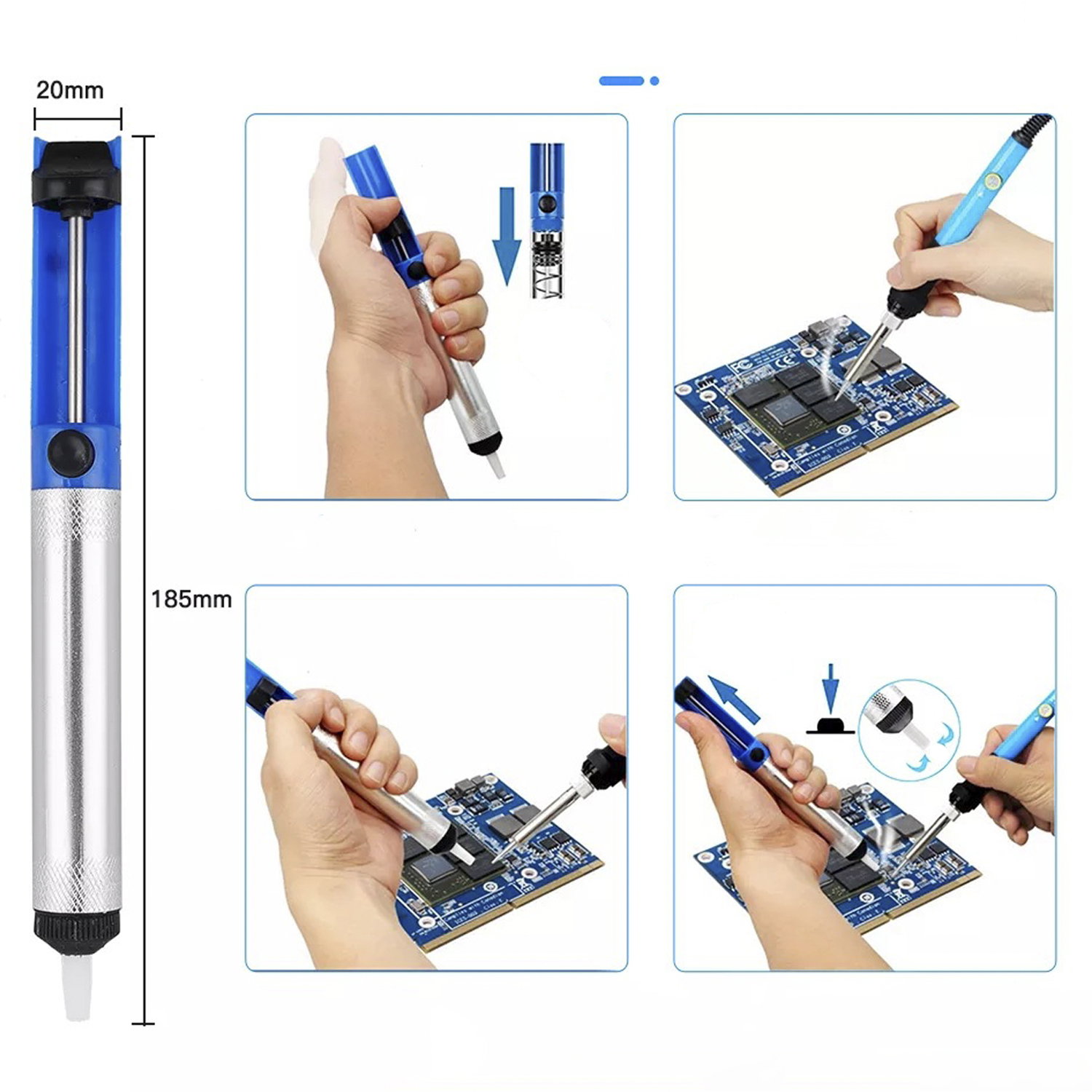 Solidne wykonanie i dobrze wyważona konstrukcja zapewni Ci wysoki komfort pracy. Lutownica posiada regulację temperatury od 200 do 450°C. Temperaturę w łatwy sposób dostosowuje się za pomocą pokrętła znajdującego się na kolbie lutowniczej. Duża moc powoduje momentalne nagrzewanie się grota, dzięki czemu możesz szybko rozpocząć lutowanie lub rozlutowywanie detali. Dzięki gąbce dołączonej do zestawu czyszczenie grotów jest szybkie i proste. Dodatkowo w naszym zestawie otrzymujesz niezbędne narzędzie ułatwiające wylutowania elementu - odsysacz lutowniczy w aluminiowej obudowie.