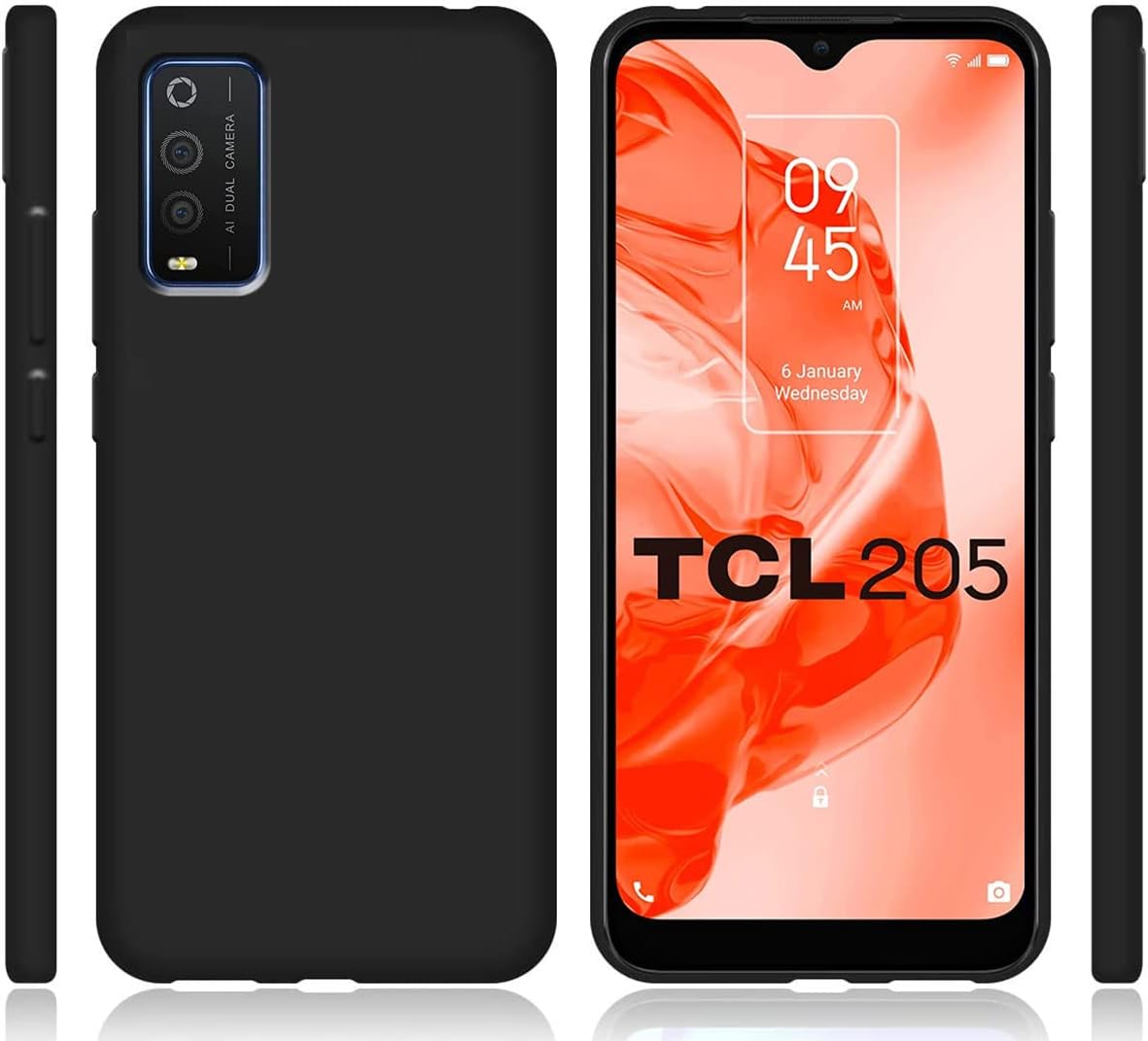 Kompletny Zestaw Ochronny LYZXMY dla TCL 205 - Przezroczyste i Czarne Etui + Szkło Hartowane